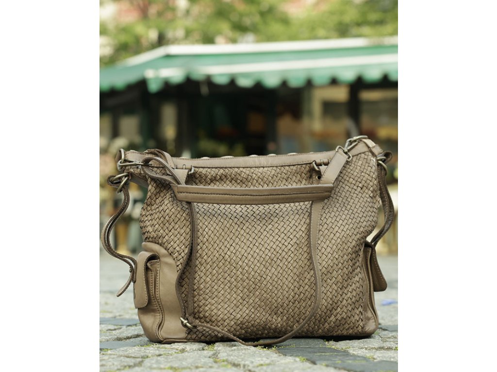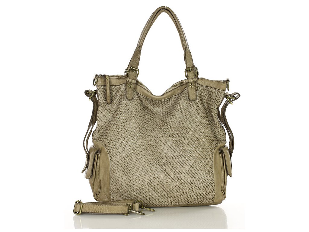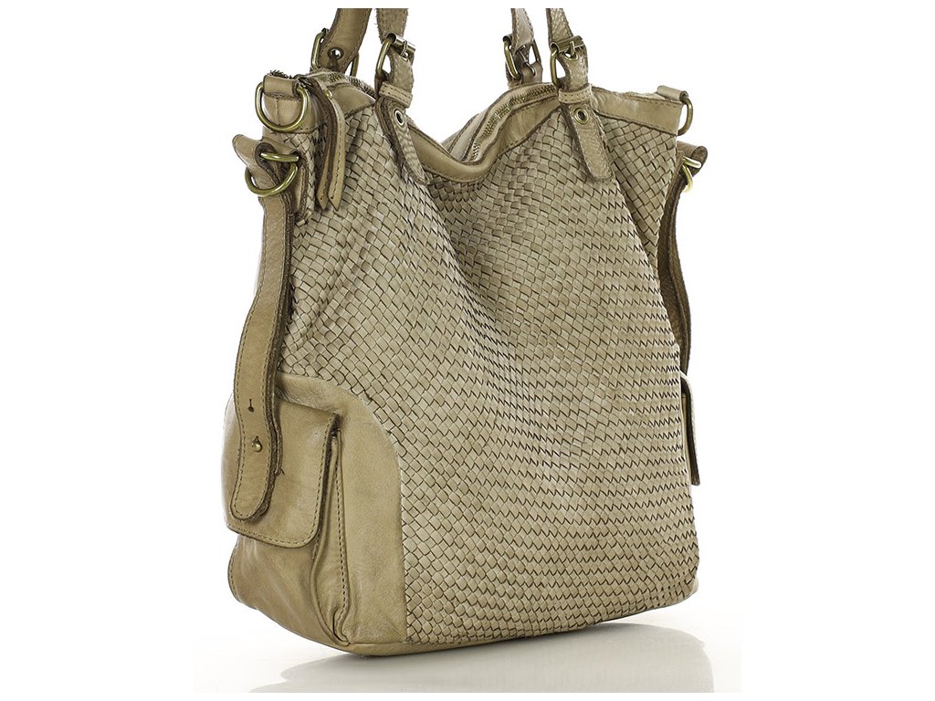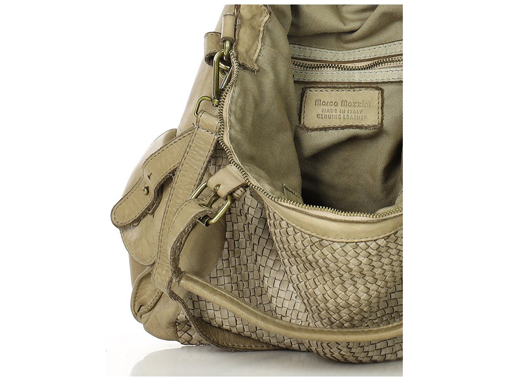 Městská taška s nastavitelnými uchy ručně šitá kožená MARCO MAZZINI; světle béžová