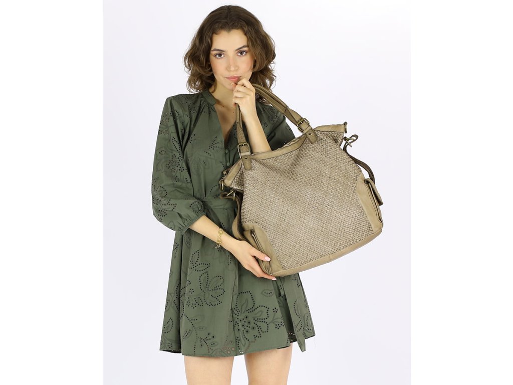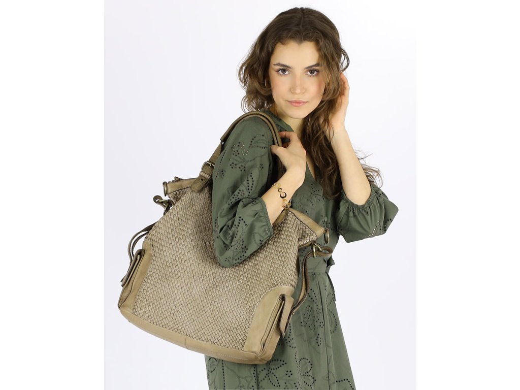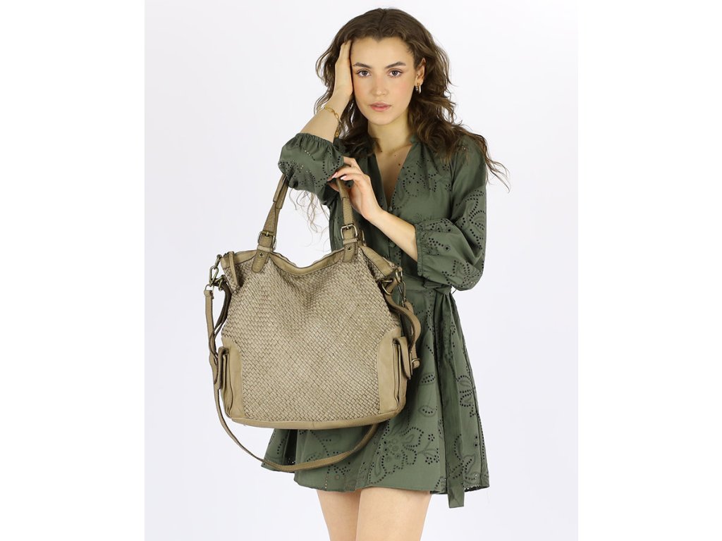 Díky dvojitým nastavitelným rukojetím si tašku snadno nasadíte na rameno. Dostatečně velká, vám umožní přenášet notebook i dokumenty. Dalšími přednostmi tohoto modelu jsou praktické kapsy na bocích a diskrétní kapsička na klíče na zadní straně modelu. Vstup do interiéru je uzavřen zipem. Taška uvnitř je zakončena podšívkou. Uvnitř je uzavřená kapsa a dvě otevřené. Sada obsahuje dlouhý popruh, na který můžete tašku připevnit v podobě velké messenger tašky.