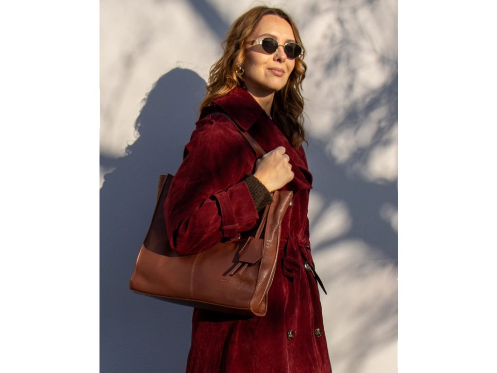 Moderní kožená shopperka Mazzini; hnědá
