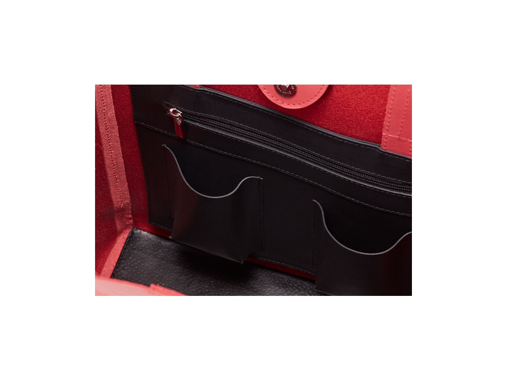 Hlavní komora tašky se zapíná na magnet. Dalším překvapením je interiér vyrobený v krásné, kontrastní barvě. Je dobře organizovaná a vybavená praktickými kapsami na zip, aby byly ty nejpotřebnější a nejcennější věci v bezpečí a vždy na svém místě. Další místa pro smartphone, telefon, klíče, oblíbenou rtěnku. Toto je taška, se kterou se nebudete chtít rozloučit!