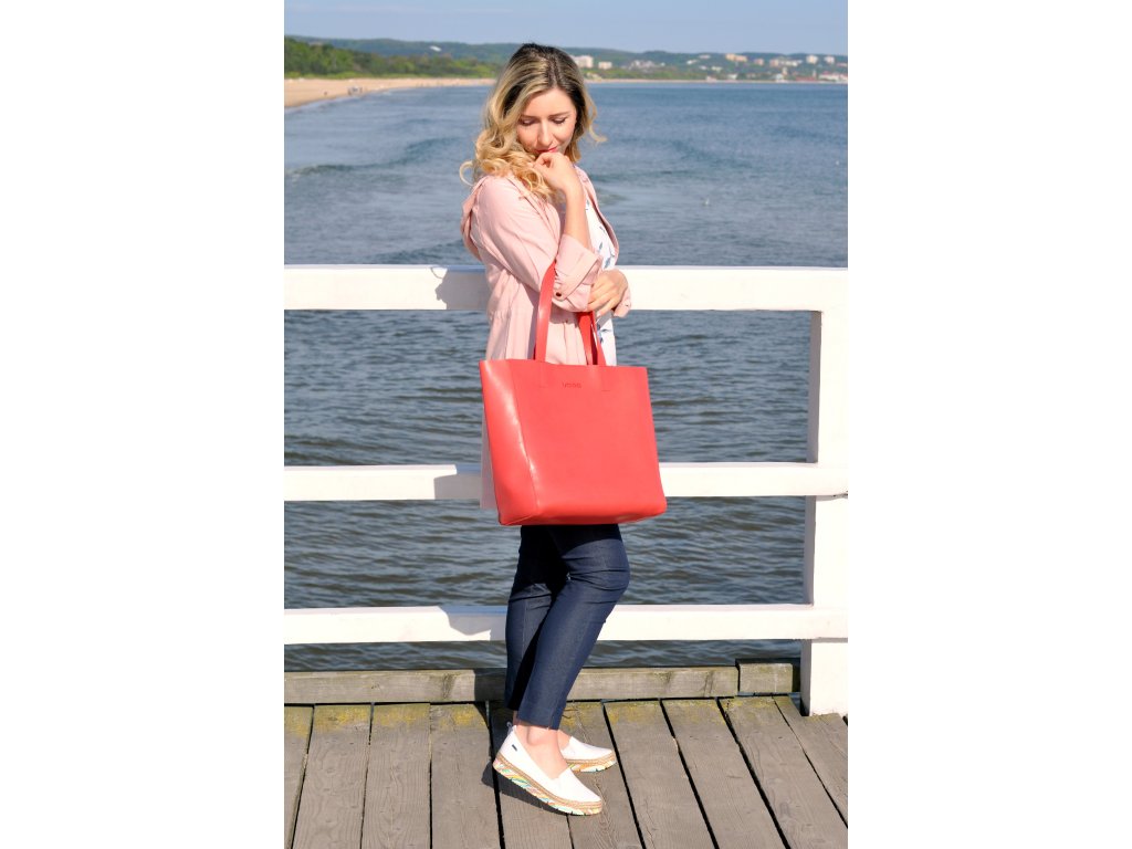 Exkluzivní kožený shopper zaujme svou elegancí, jednoduchým tvarem a krásným matným povrchem. Je univerzální, módní a prostorný. Vytvořeno pro náročné a aktivní ženy. Vyrobeno z odolné kůže s důrazem na každý detail. Lehce vyztužené dno a pohodlné a dlouhé rukojeti zajišťují pohodlné nošení. Nákupní taška vás doprovodí všude: v práci, ve škole, na univerzitě, na nákupech, na procházkách s dětmi, na víkendovém výletu.