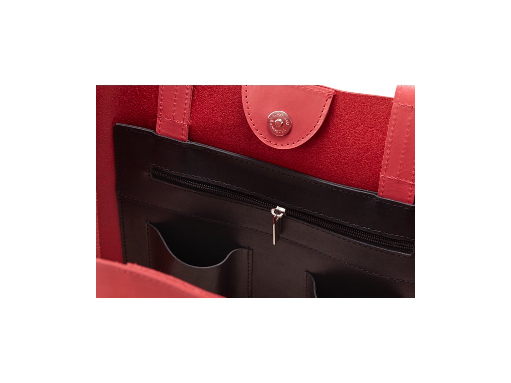 Prémiová SHOPPER BAG z pravé kůže; malinová