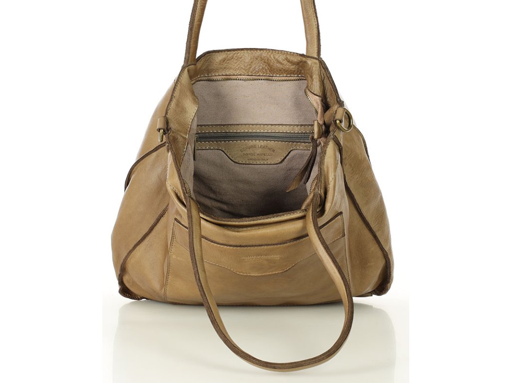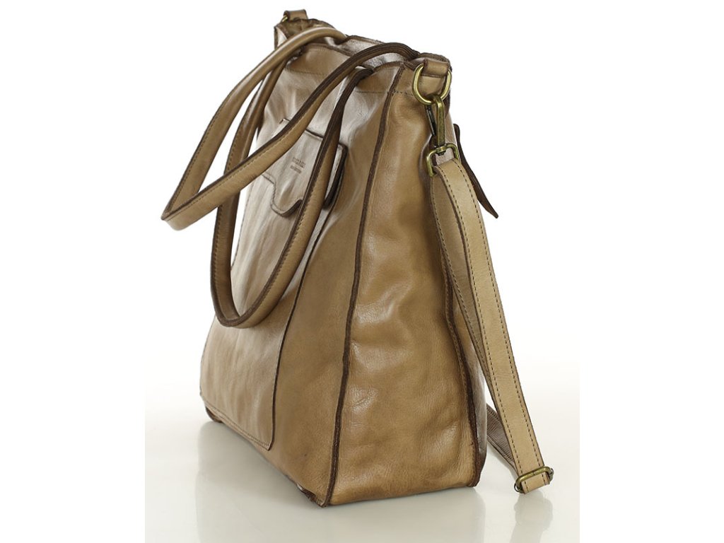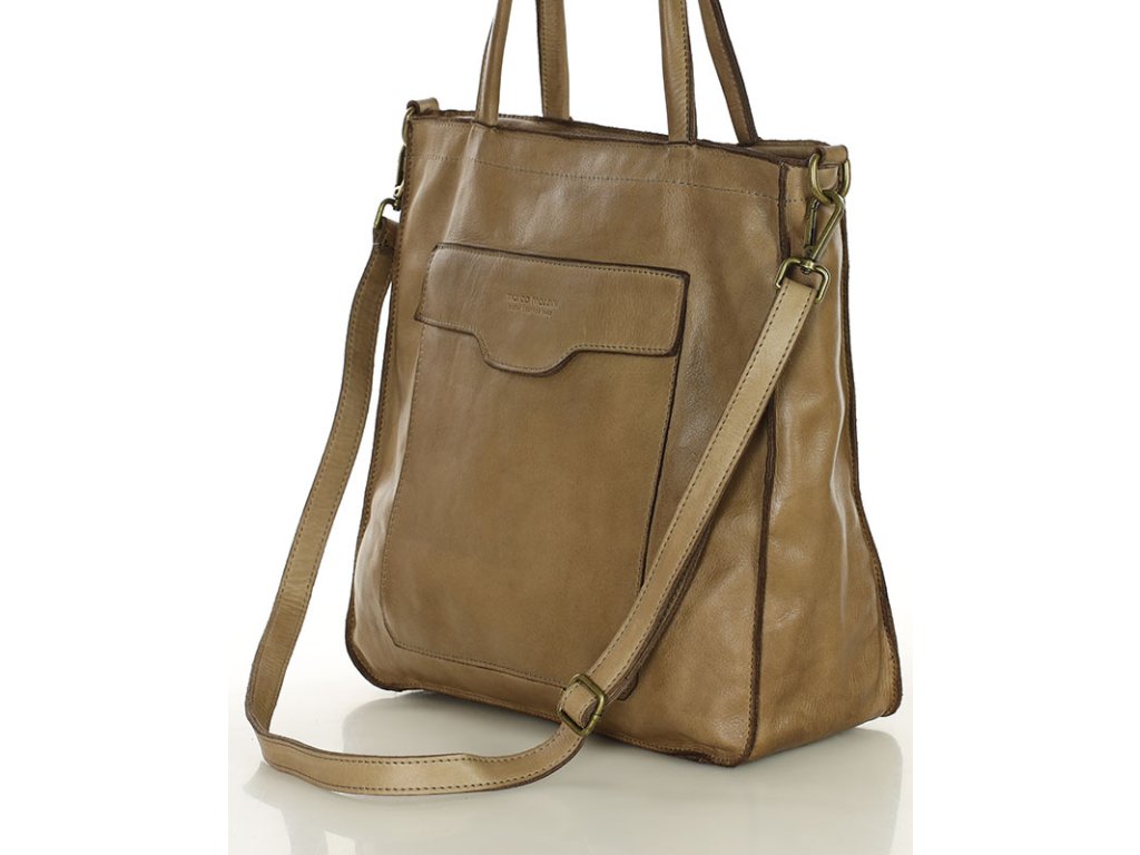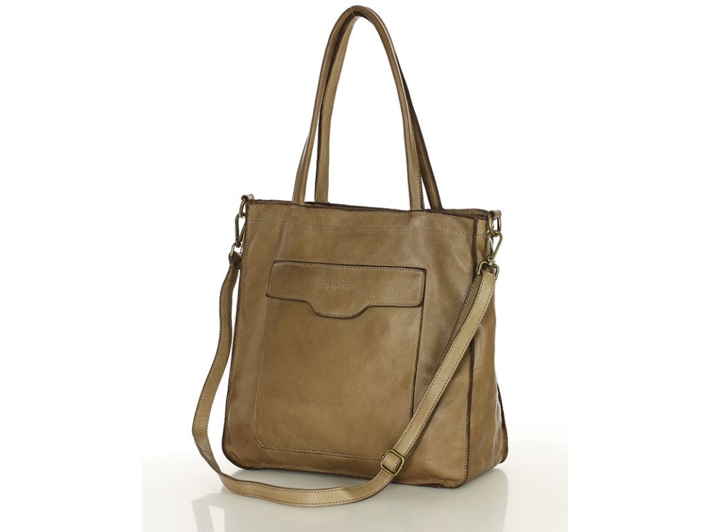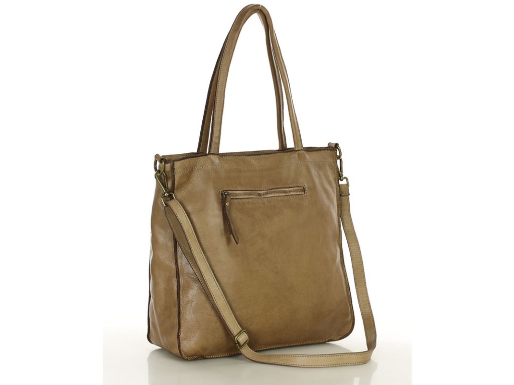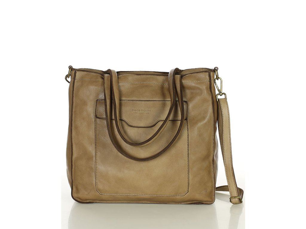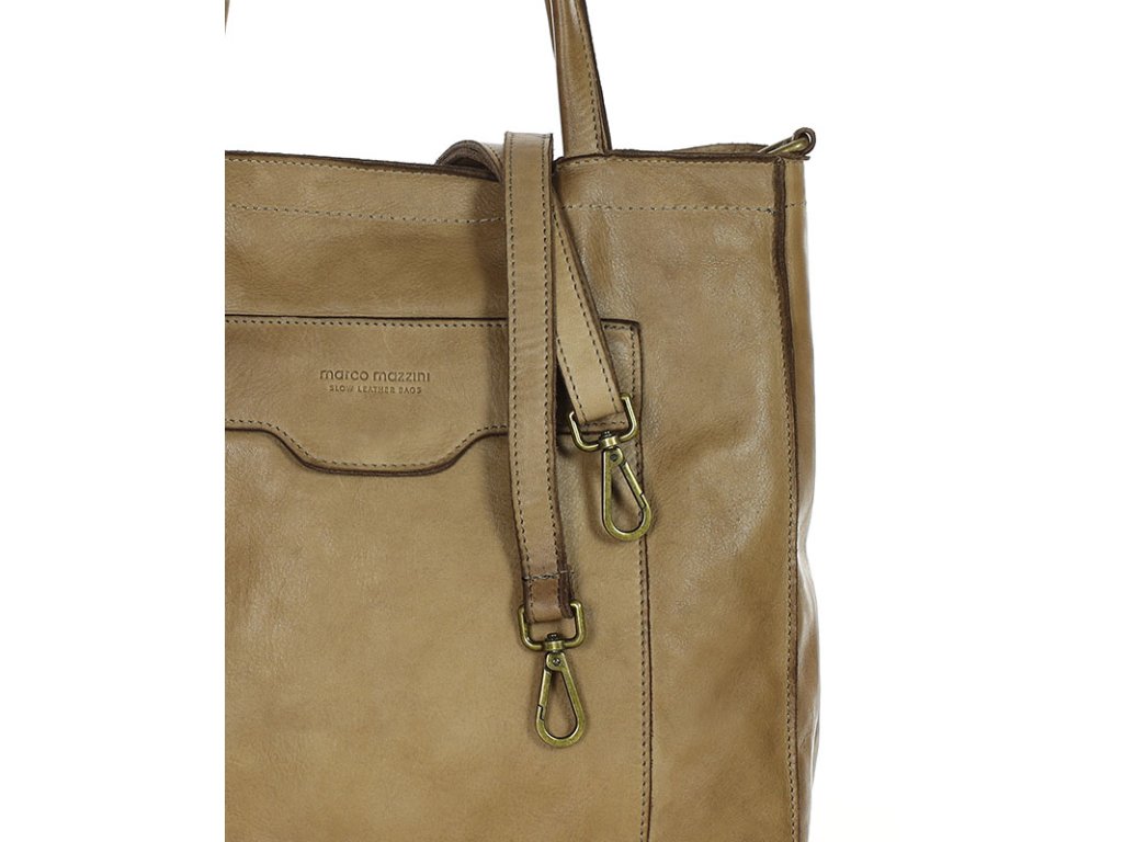 Shopper taška s kapsami z pravé kůže – Marco Mazzini; béžová