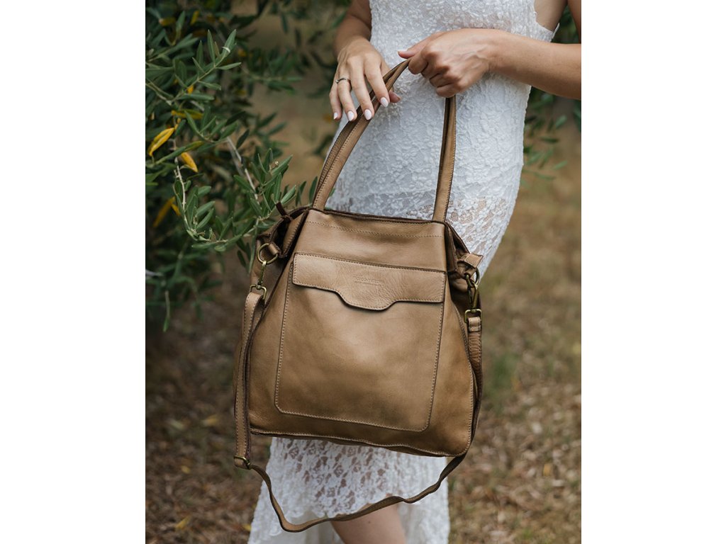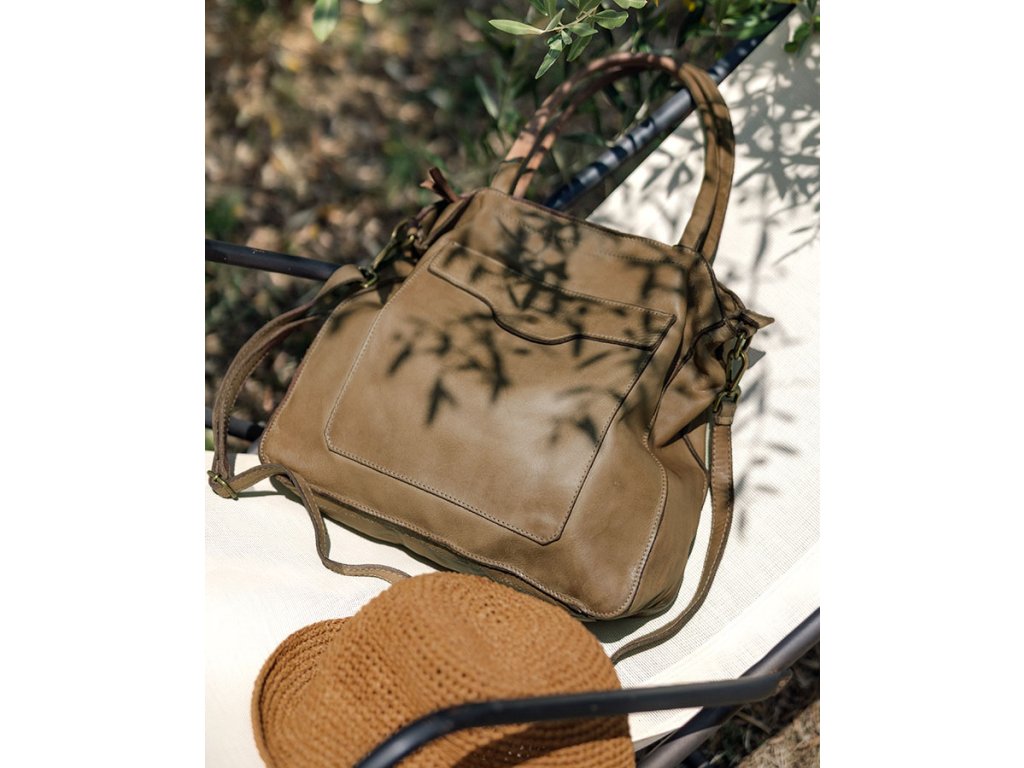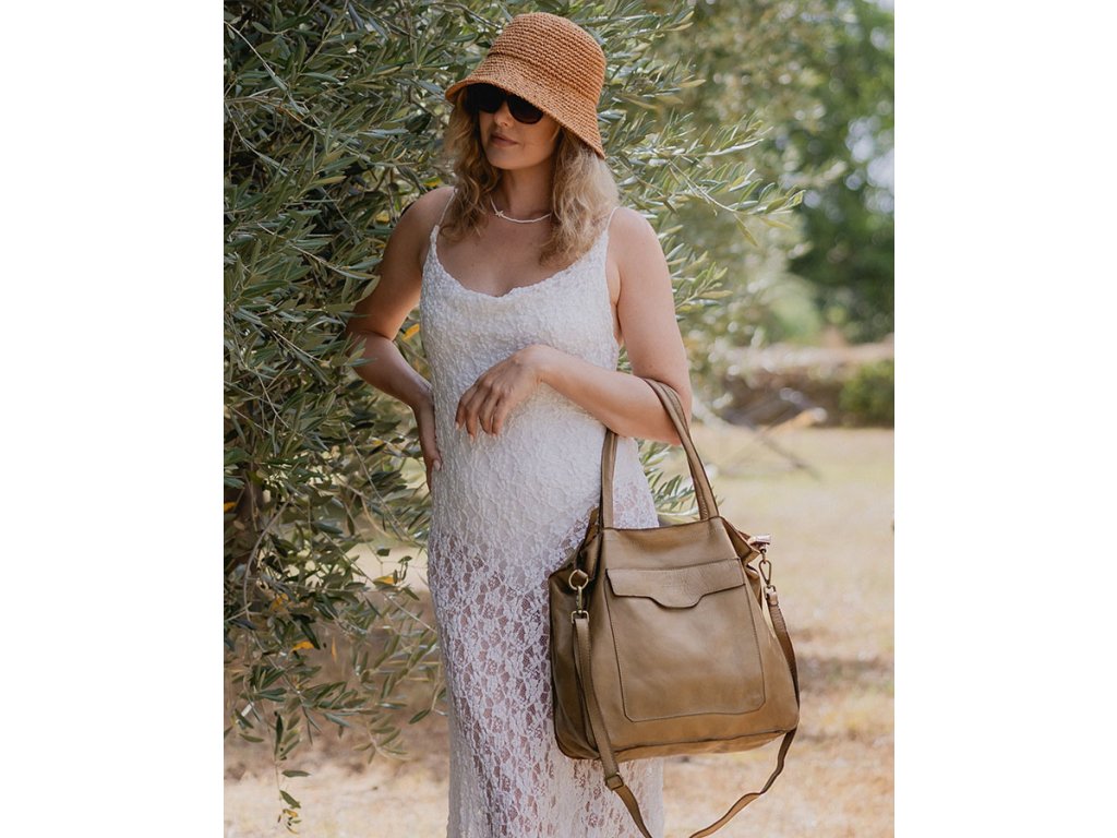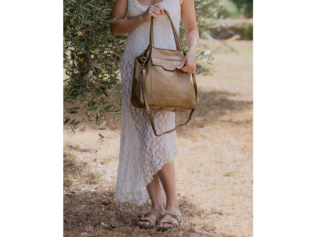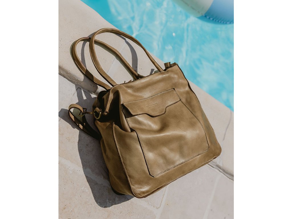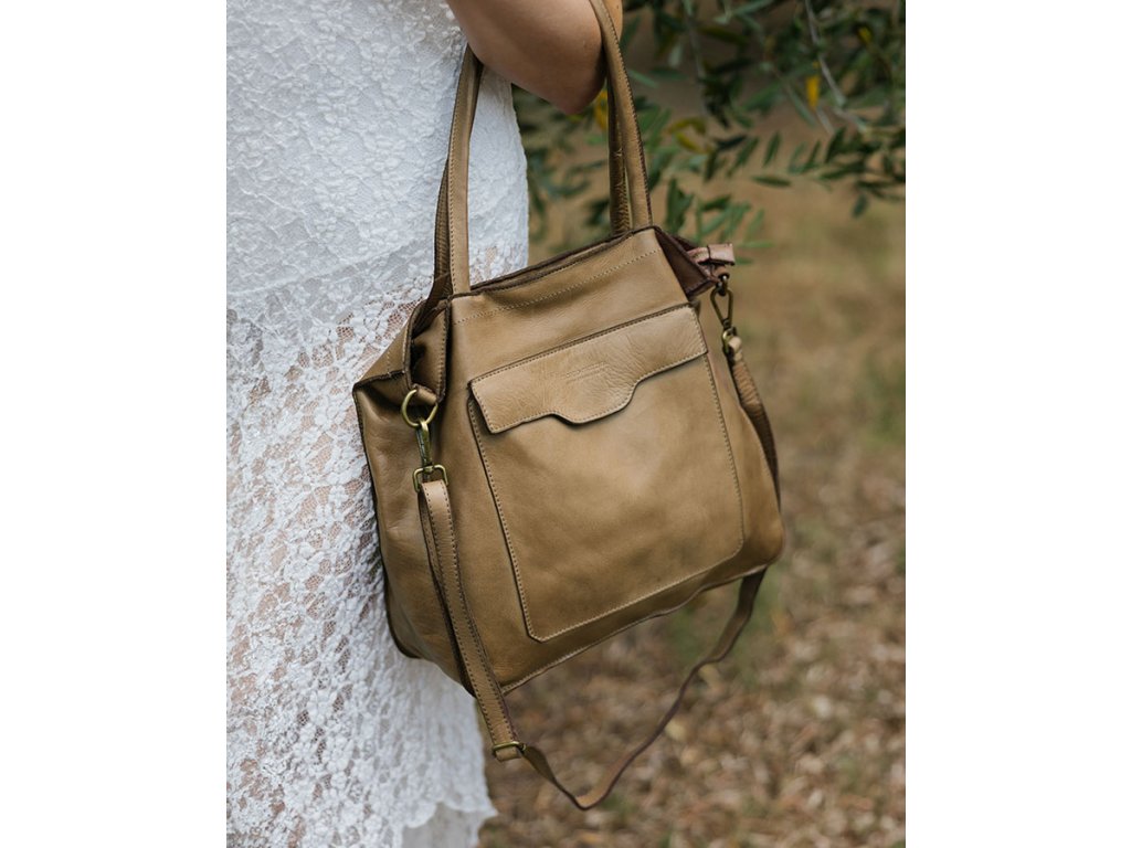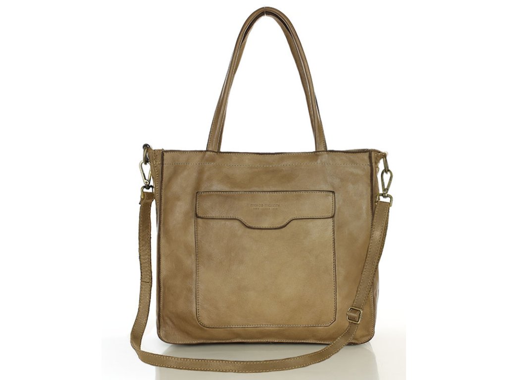 Shopper taška s kapsami z pravé kůže – Marco Mazzini; béžová