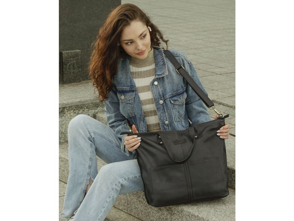 Funkčnost nákupní tašky – uspořádání vnitřku a kapes: Uvnitř tašky je kapsa na zip a dvě otevřené přihrádky pro rychlý přístup k nezbytnostem. Celý vnitřek je podšitý odolnou bavlněnou podšívkou, která chrání obsah a dodává mu stylový nádech. Přední kapsa s magnetickým zapínáním a zadní kapsa na zip jsou dalšími vychytávkami.