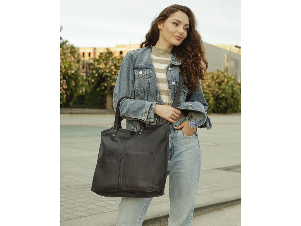 Velká kožená shopper nákupní taška MARCO MAZZINI; černá