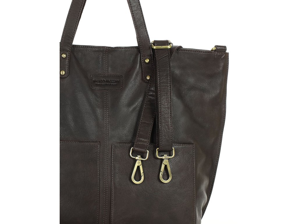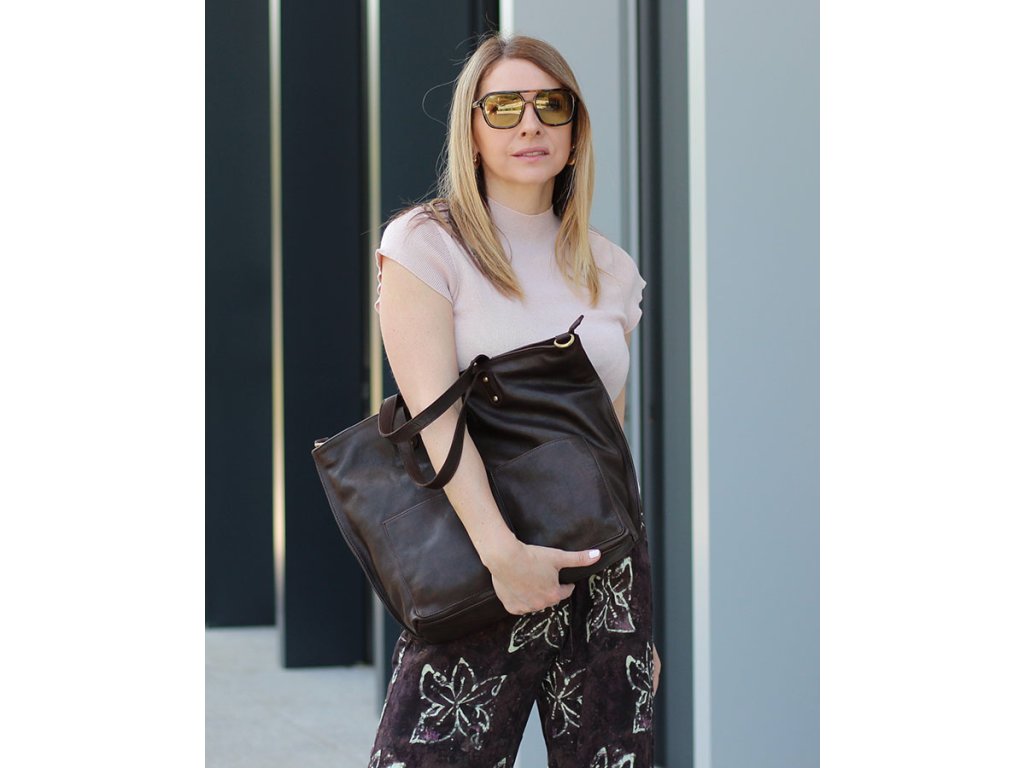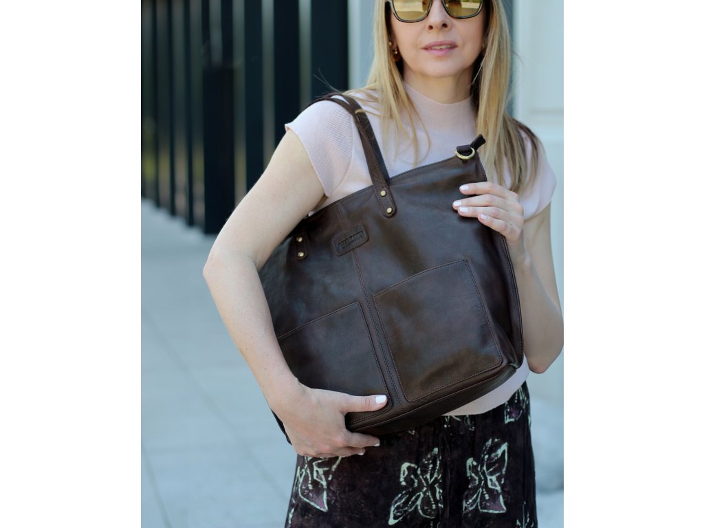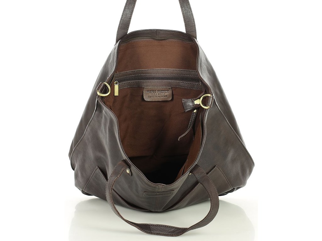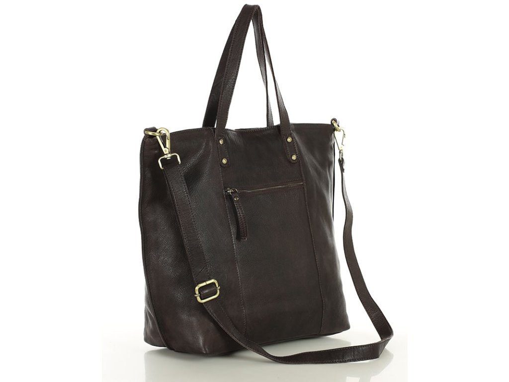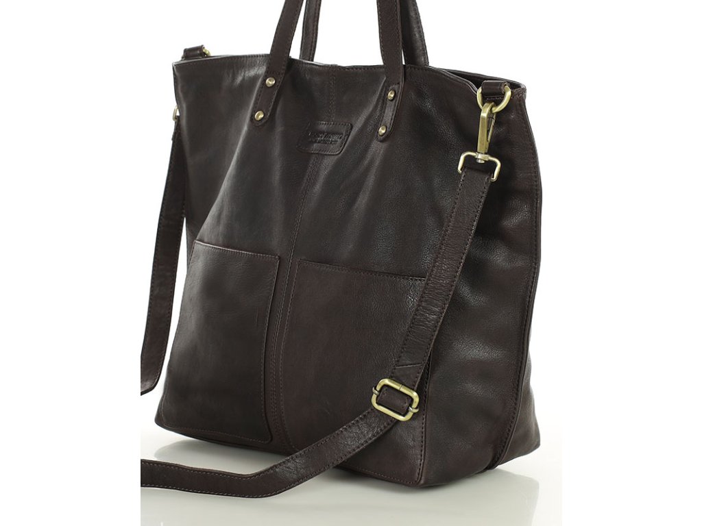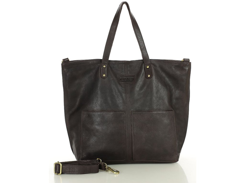 Velká kožená shopper nákupní taška MARCO MAZZINI; tmavě hnědá