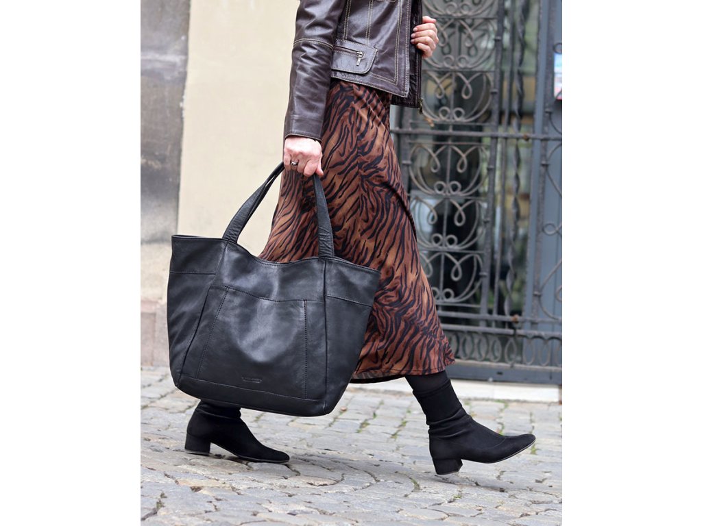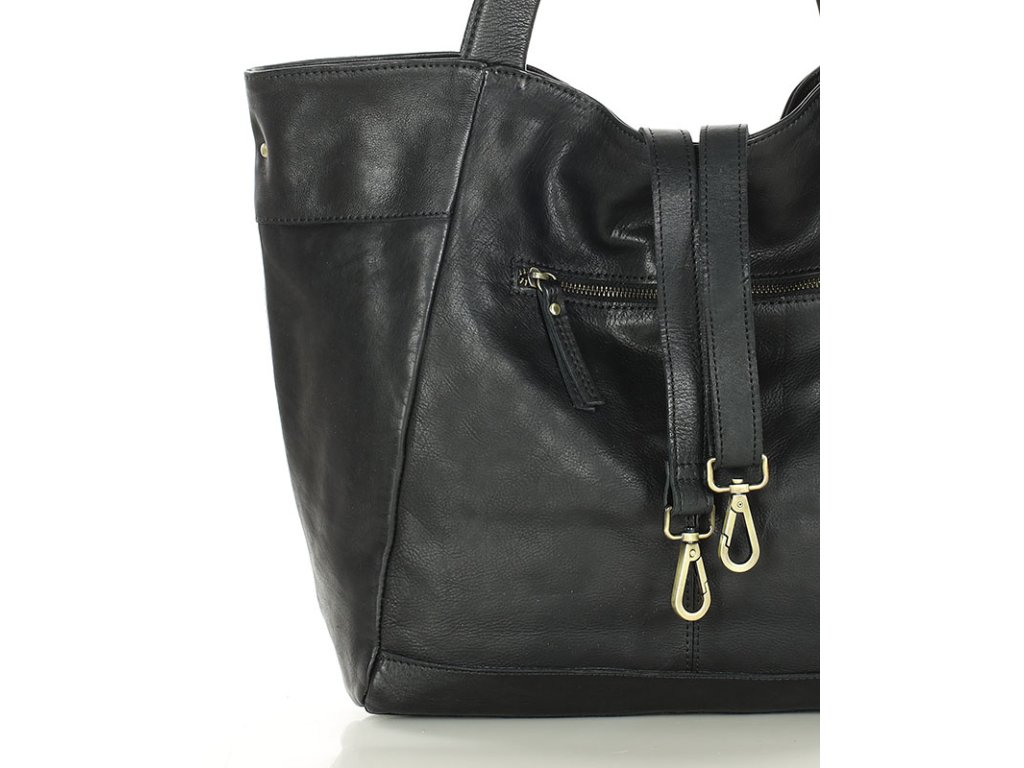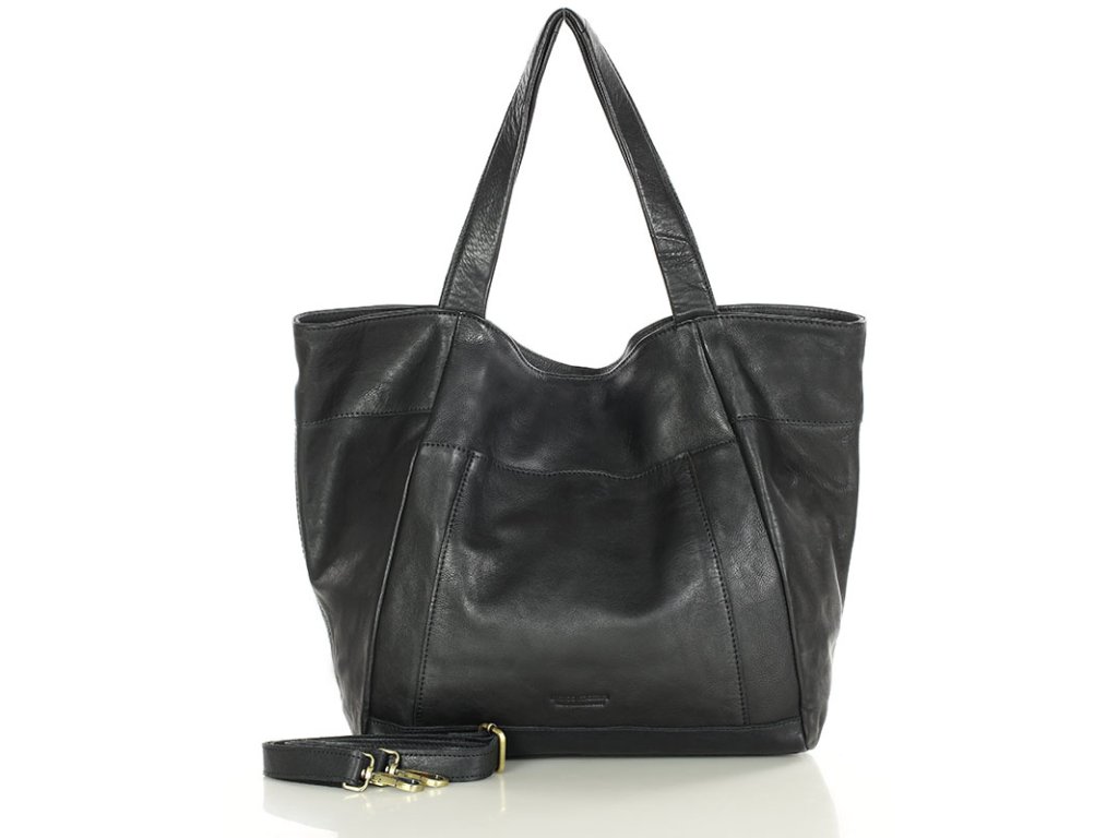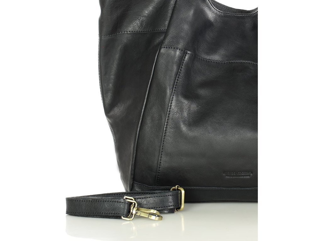 Velká kožená shopper taška s kapsou MARCO MAZZINI; černá