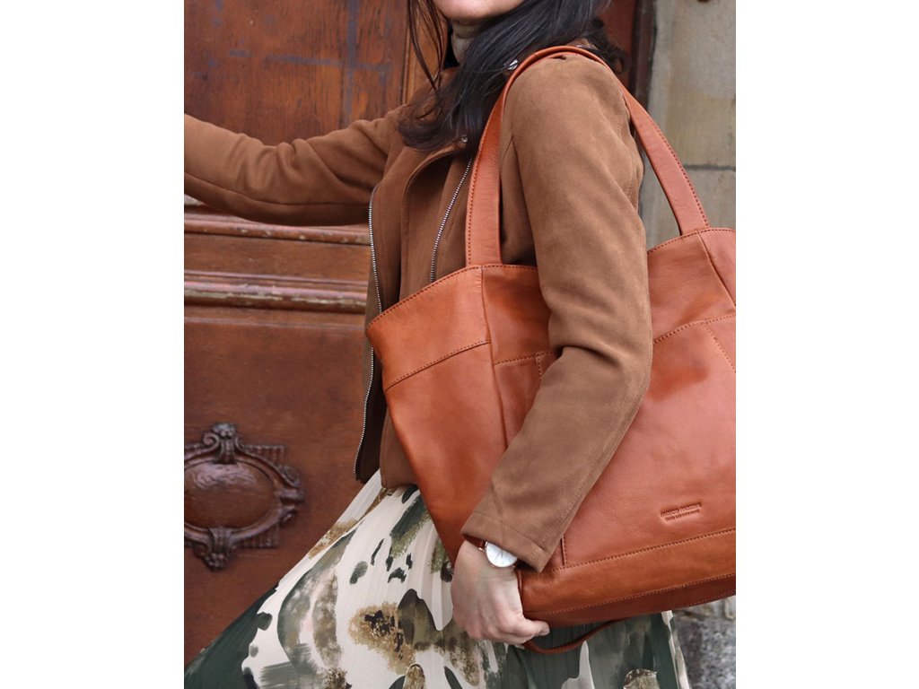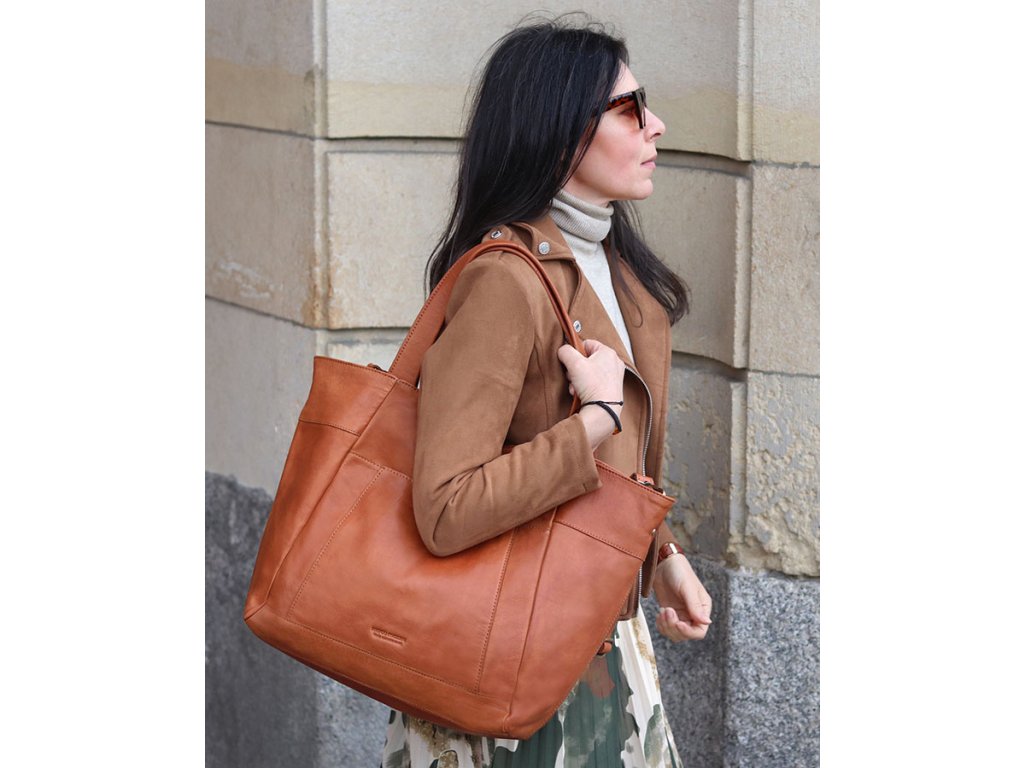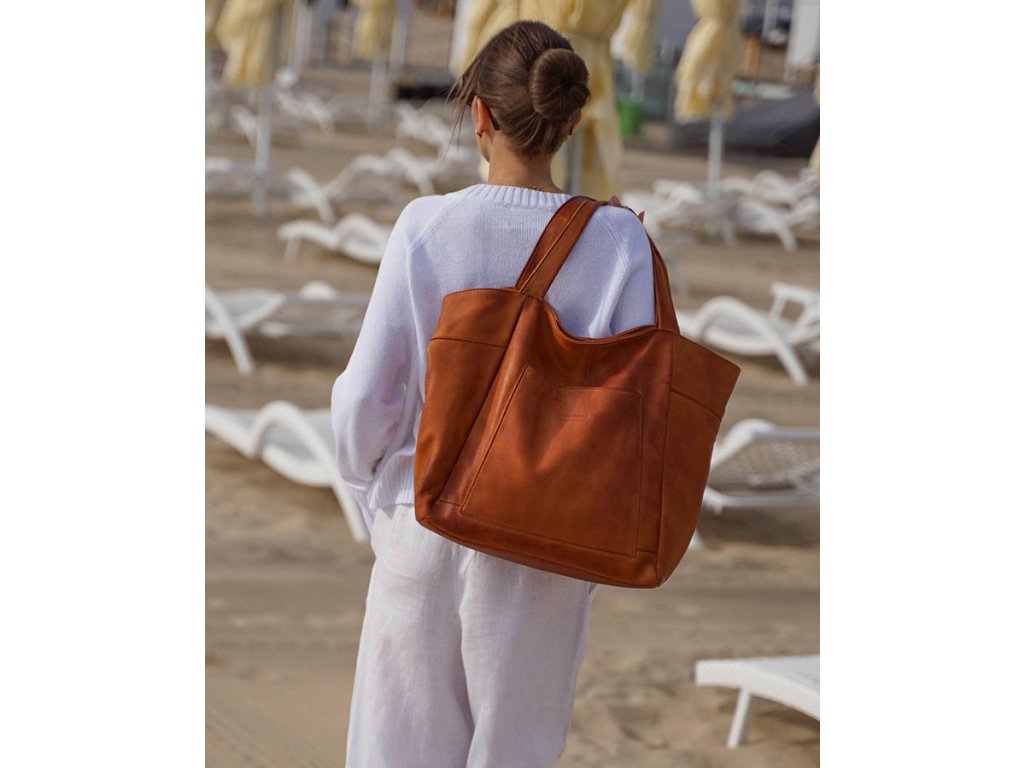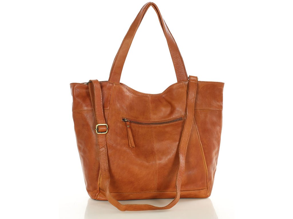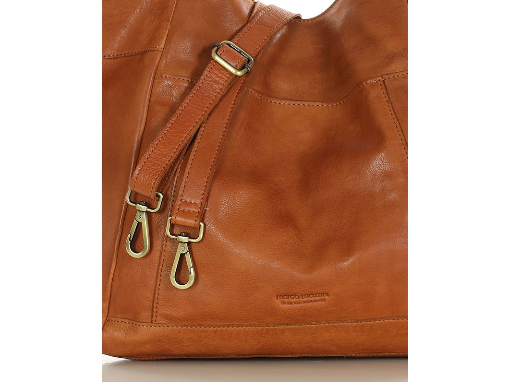 Velká kožená shopper taška s kapsou MARCO MAZZINI; velbloud