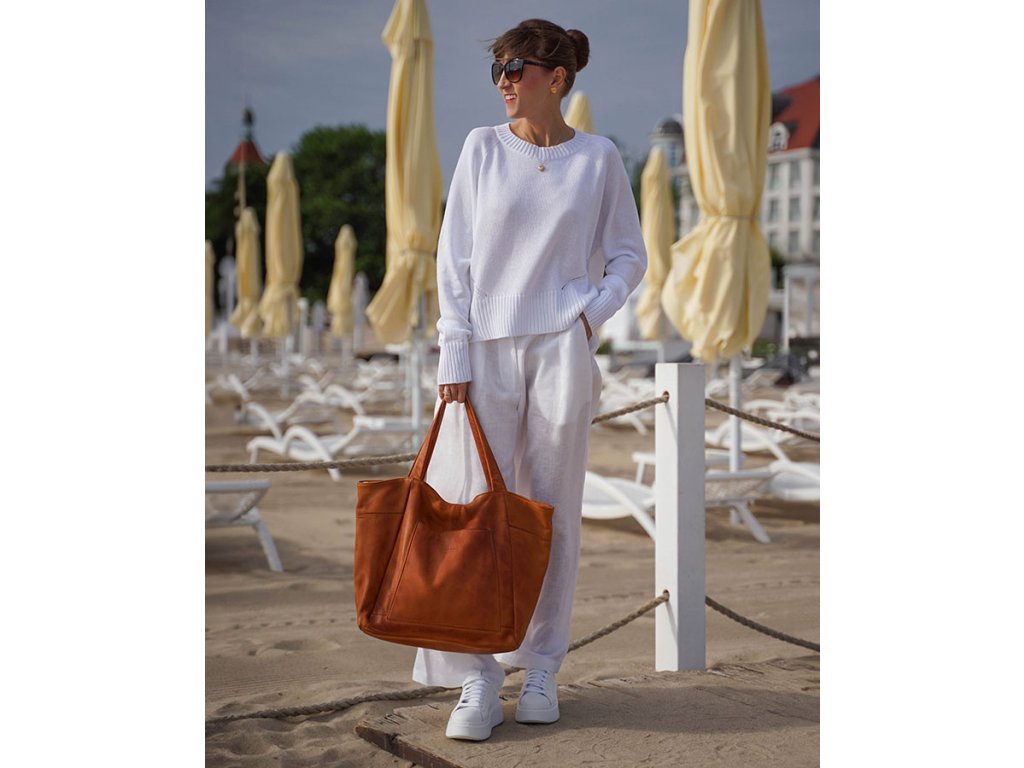 Uvnitř má tato nákupní taška s kapsou jednu kapsu na zip a dvě otevřené kapsy, což usnadňuje organizaci jejího obsahu. Vnější přední strana tašky má kapsu na magnetické zapínání a další kapsu na zip vzadu. Celá taška je zakončena bavlněnou podšívkou, která jí dodává elegantní nádech.