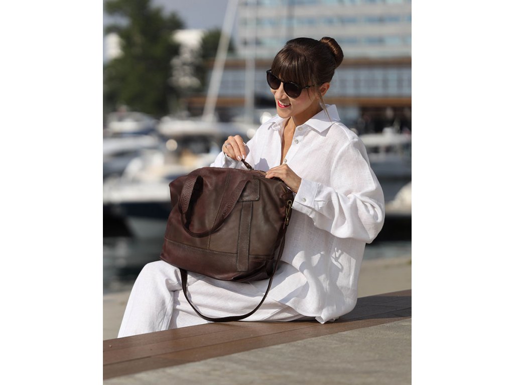 Vyrobena z měkké pravé kůže, kombinuje elegantní design s odolností a její prostorný interiér pojme všechny vaše nezbytnosti – od dokumentů A4 až po notebook nebo kosmetickou tašku. Nákupní taška pro každodenní pohodlí. Má pevné, pohodlné rukojeti a další popruh přes rameno pro větší pohodlí při každodenních činnostech. Praktické kapsy – jedna na zip a jedna otevřená – usnadňují organizaci vašich věcí. Další kapsa v zadní části tašky poskytuje rychlý přístup k nezbytnostem.