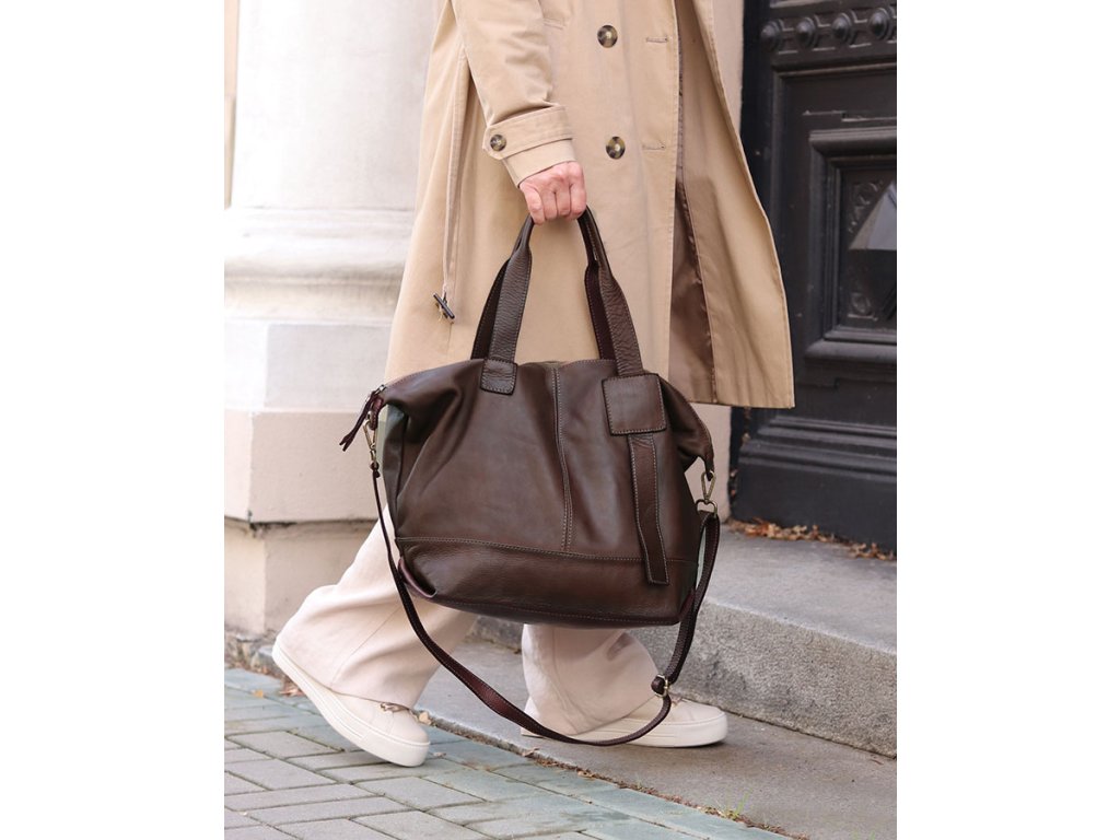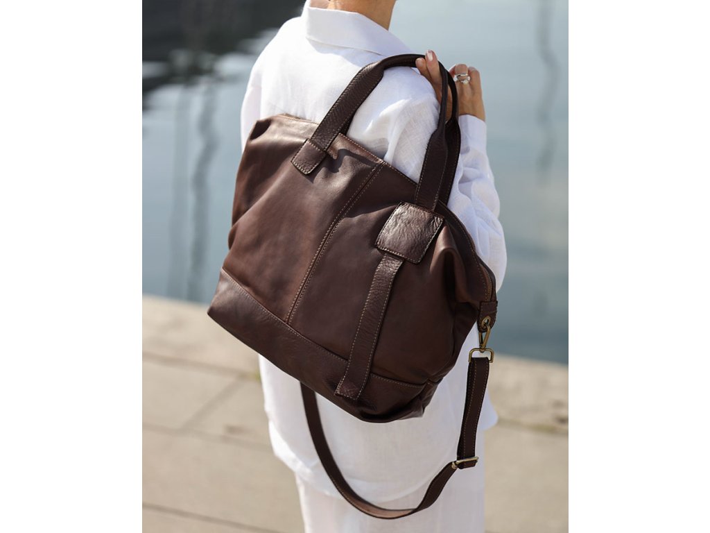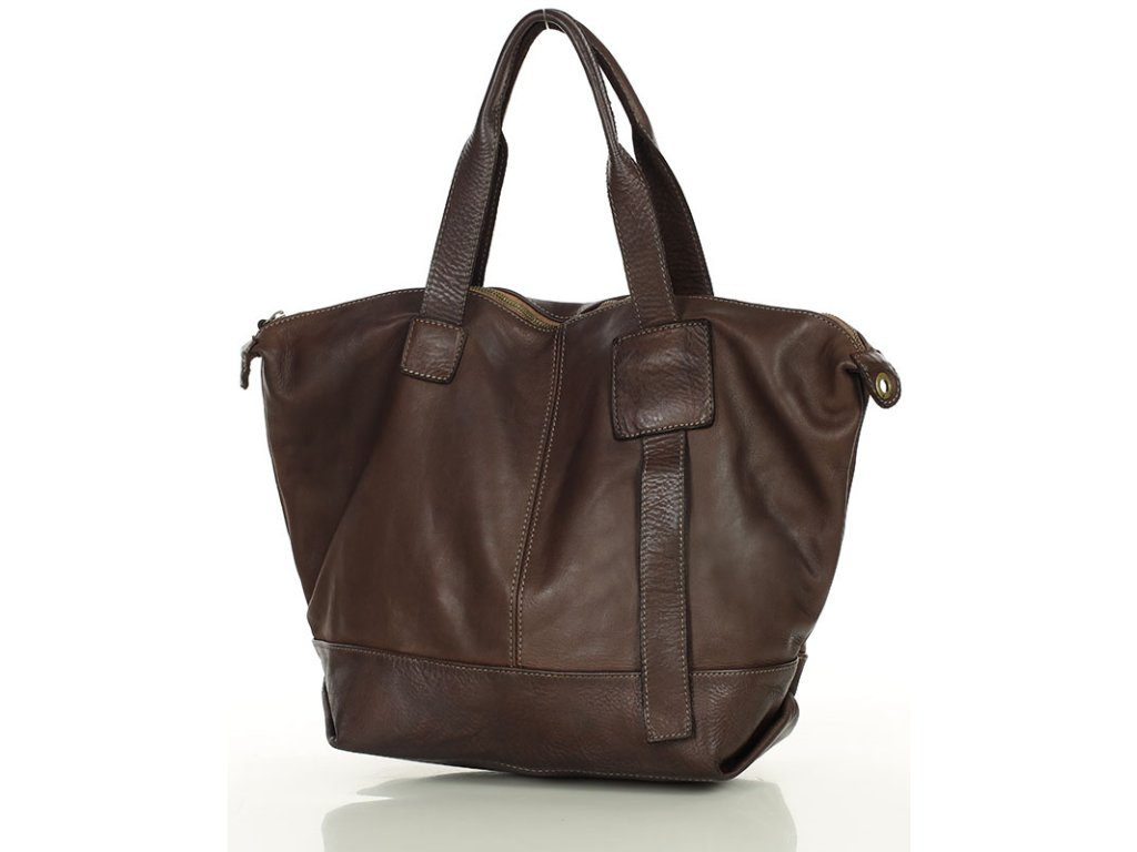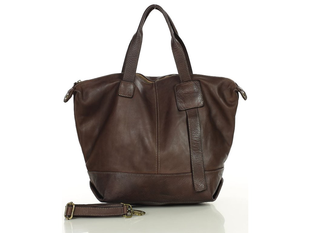Velká nákupní taška z měkké italské kůže Marco Mazzini; hnědá