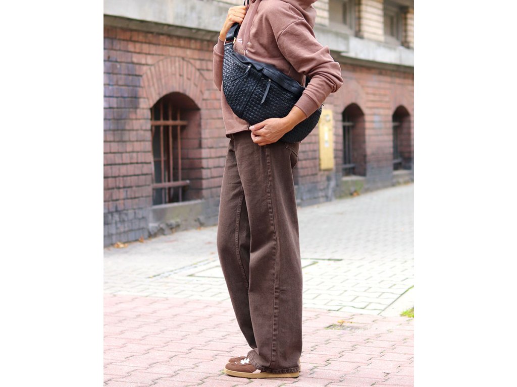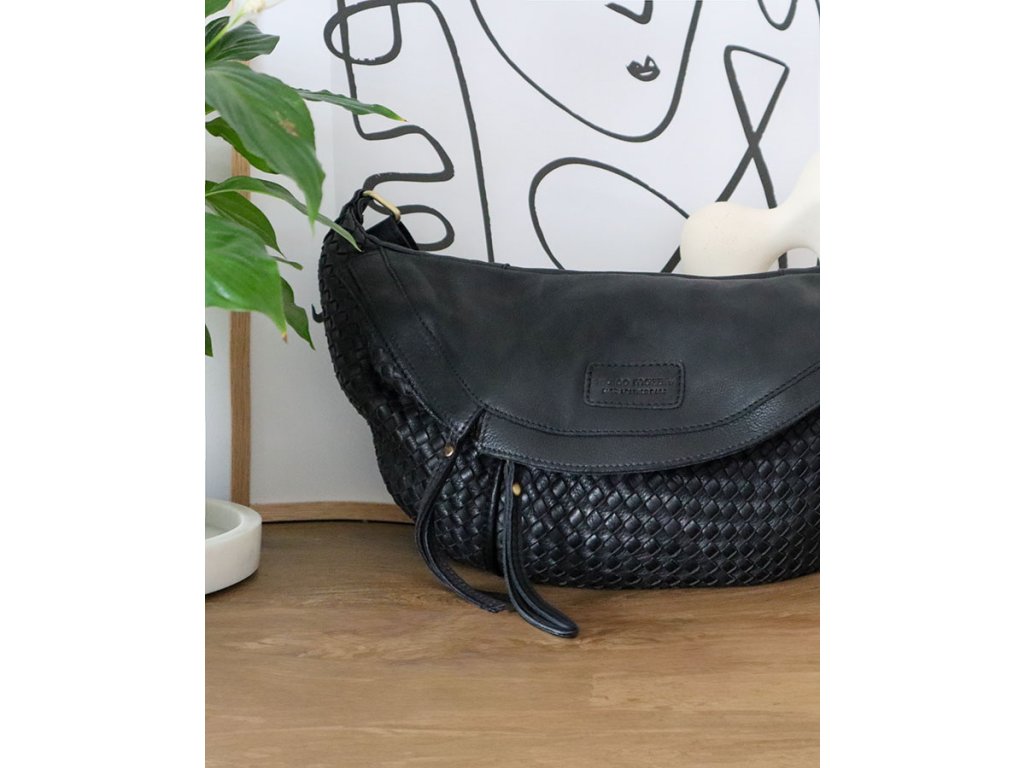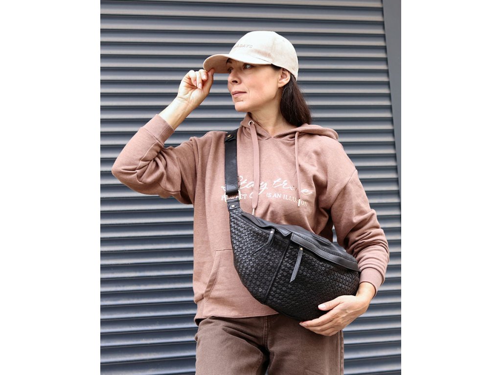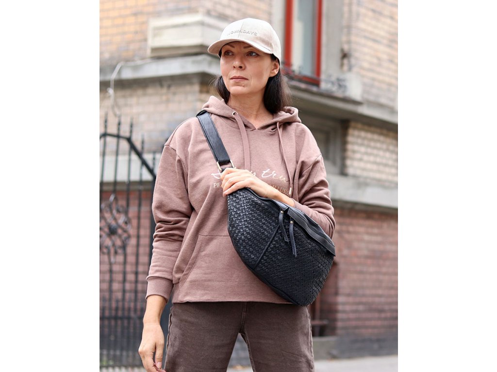 Velká kožená crossbody ledvinka MARCO MAZZINI; propletená černá