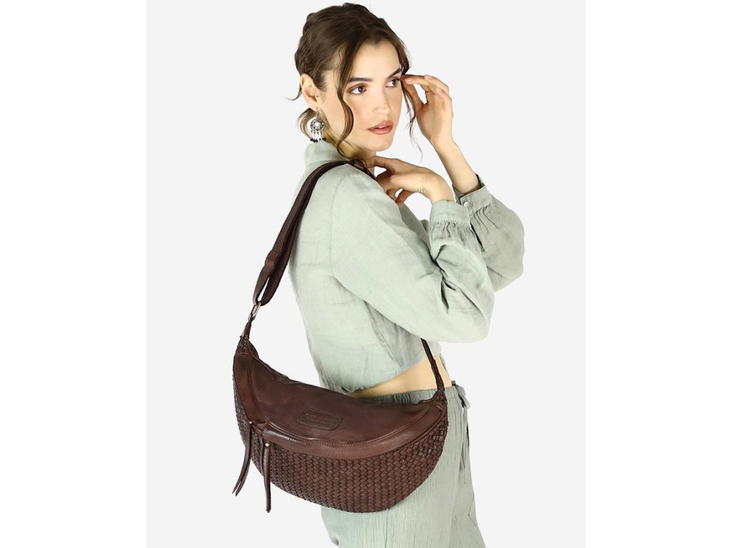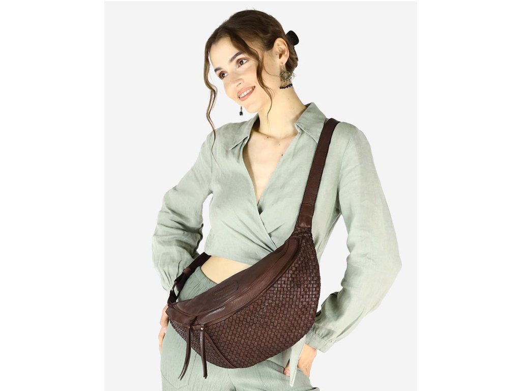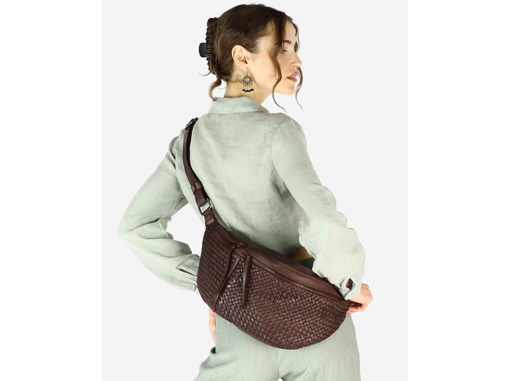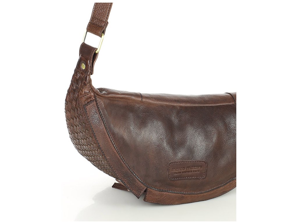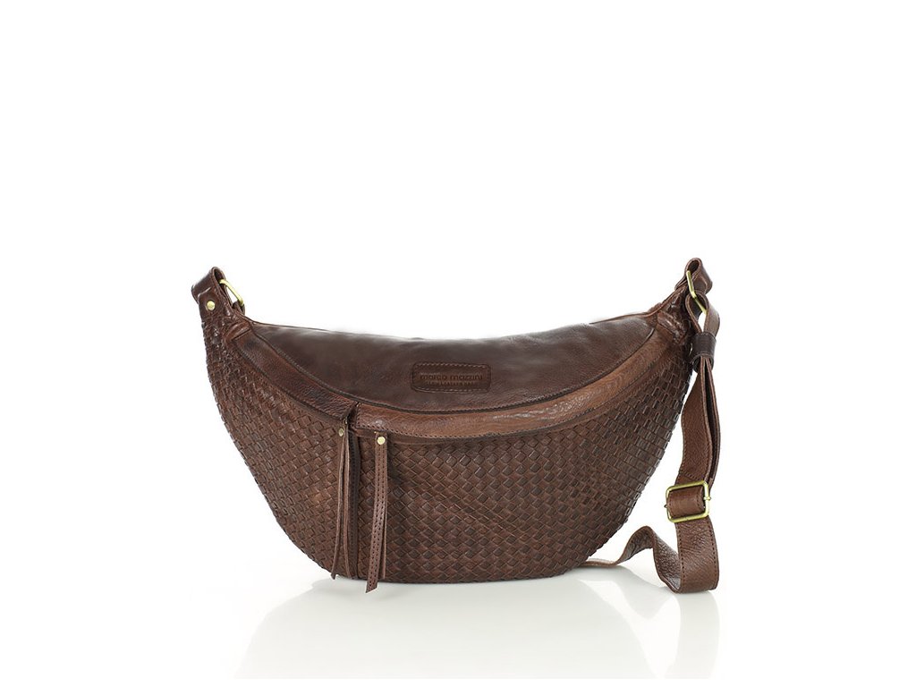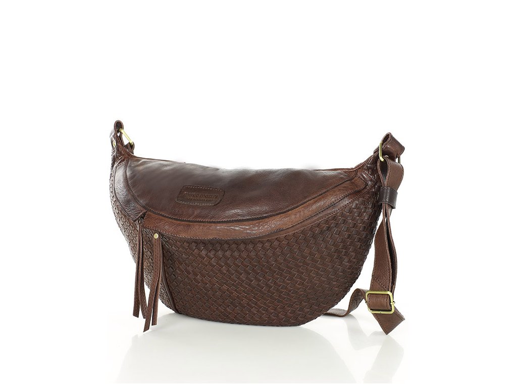 Velká ledvinková kabelka do pasu kůže MAZZINI; čokoláda