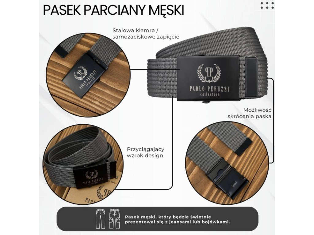 Pánský textilní pásek do kalhot PERUZZI; šedá