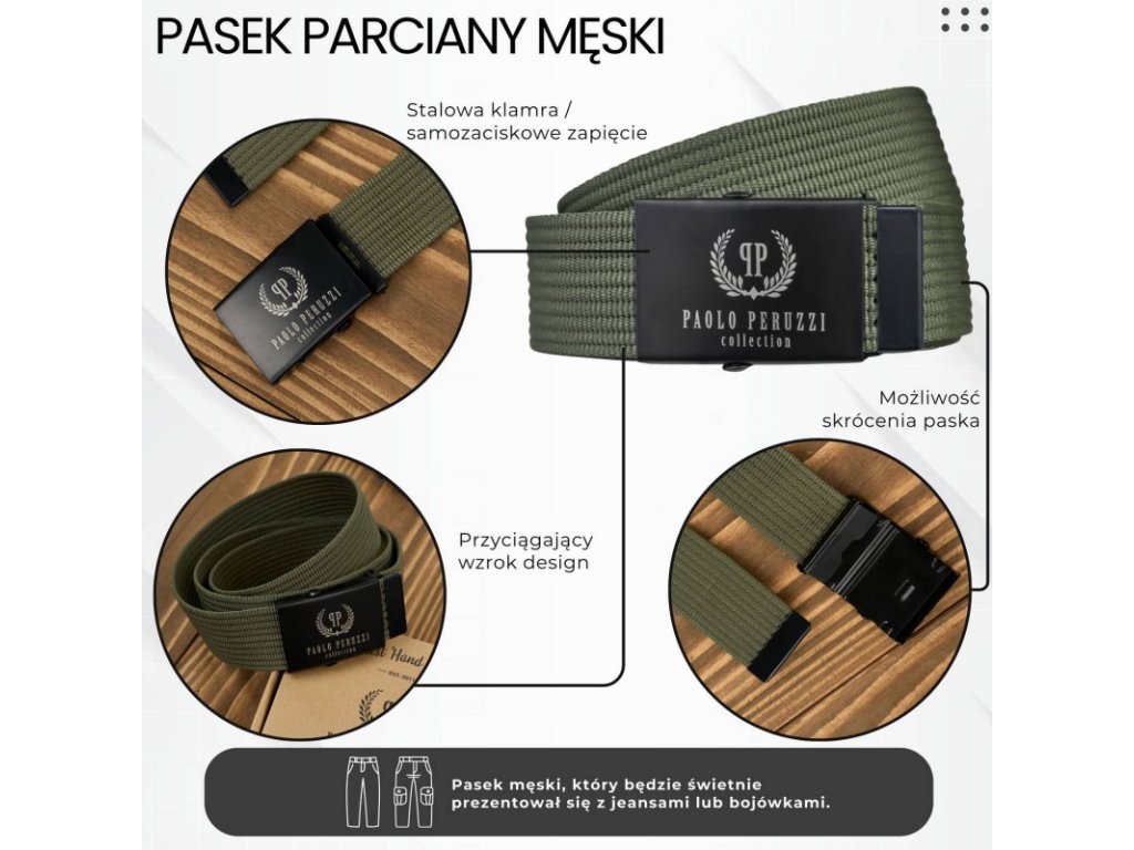Pánský textilní pásek do kalhot PERUZZI; zelená