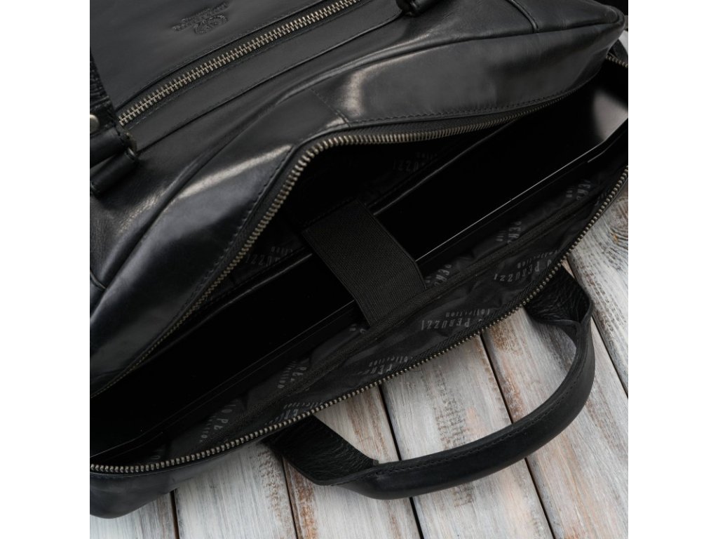 Kožená taška přes rameno na notebook, prostorná Peruzzi; černá