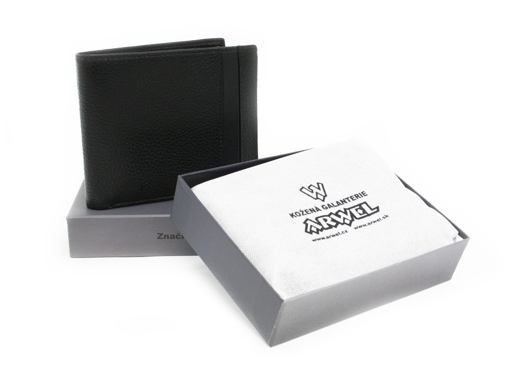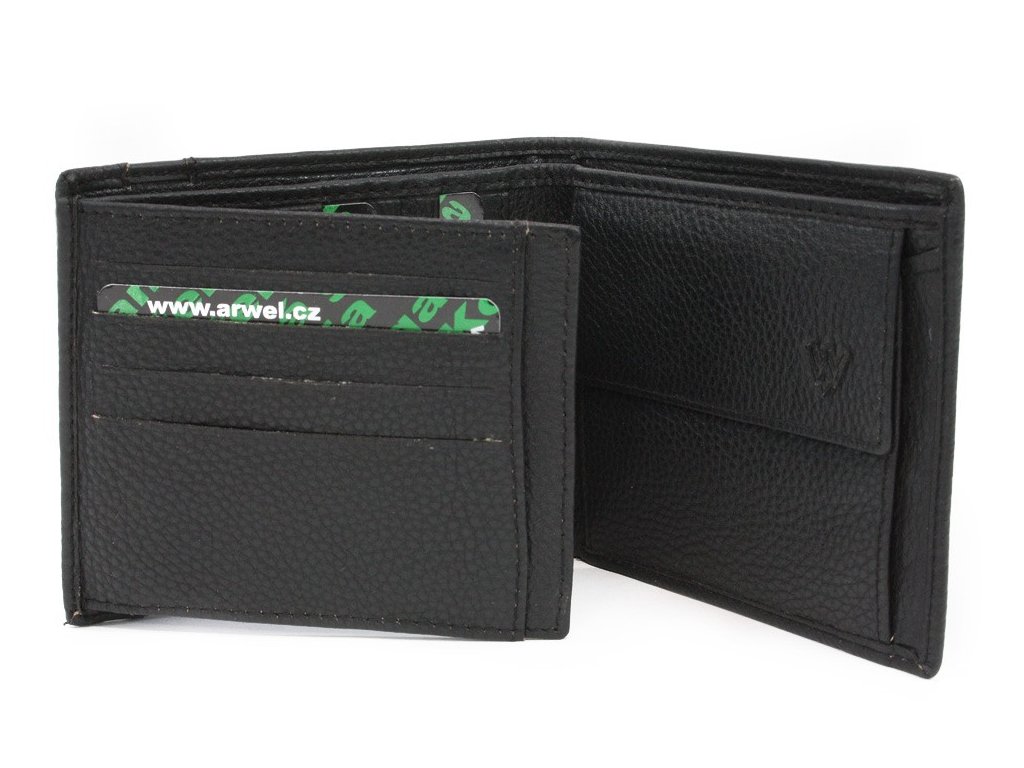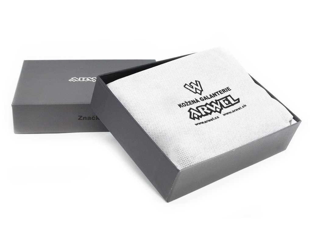 2 přihrádky na bankovky, klopnová kapsa na mince, 10 kapes na kreditní karty, občanský nebo řidičský průkaz, 2 skryté kapsy, 1 průhledné okno.
