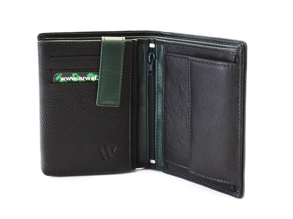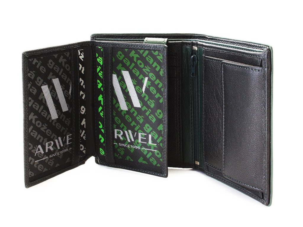Pánská kožená peněženka s vnitřní zápinkou - česká výroba; černá-zeleň
