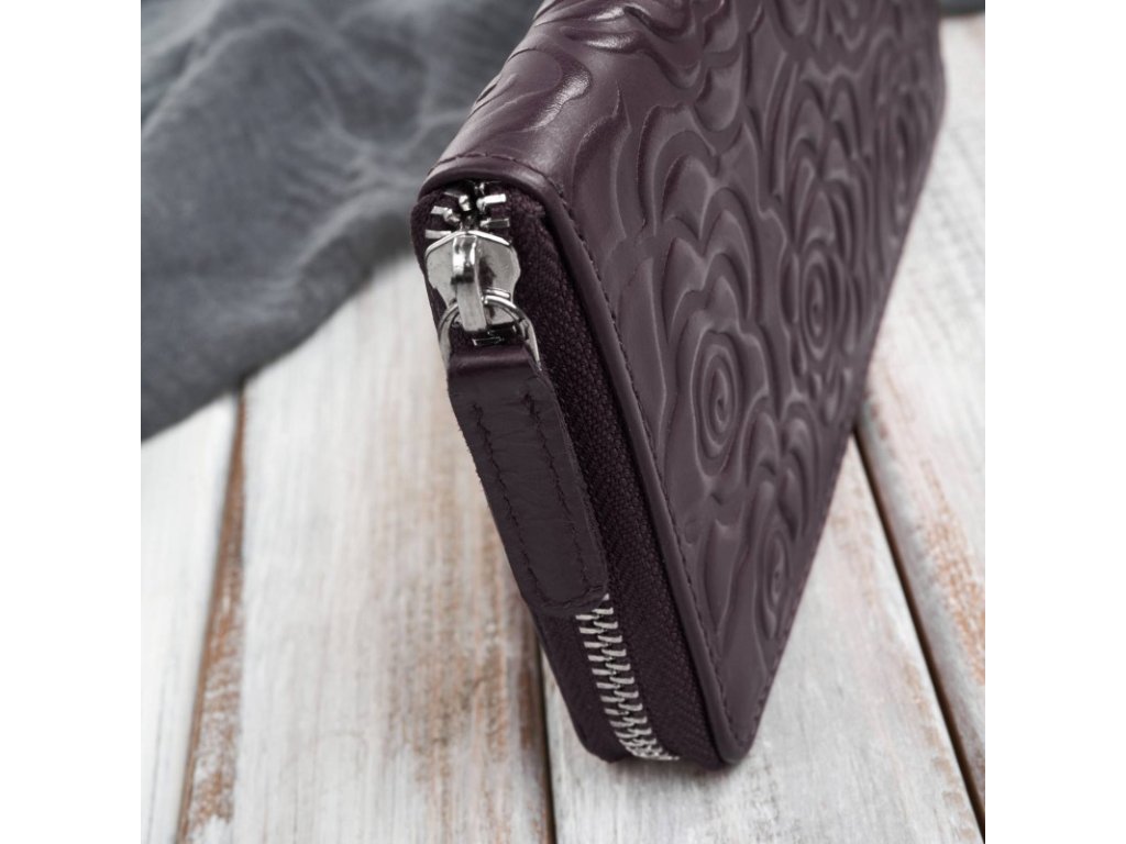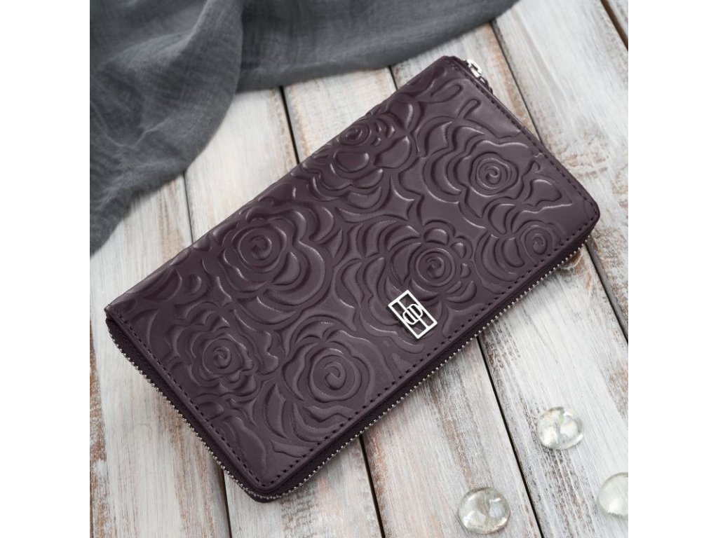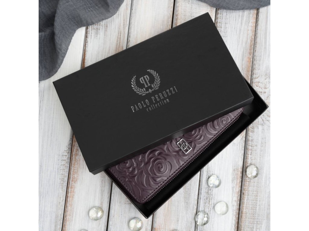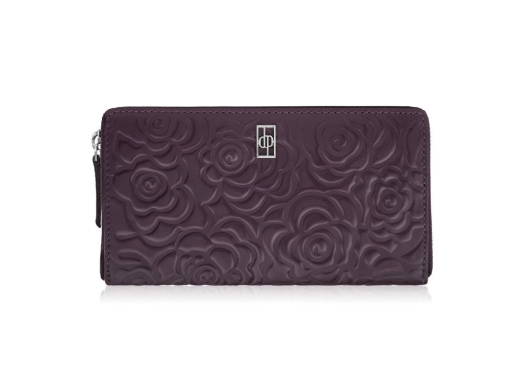 Dámská kožená peněženka horizontální s květinovým vzorem Peruzzi; burgundy