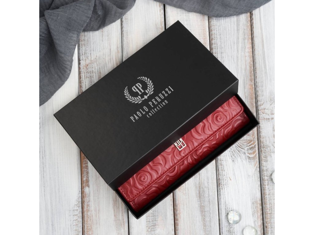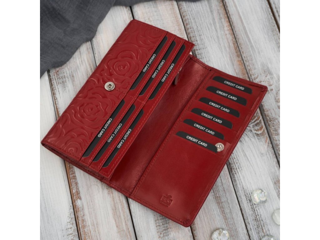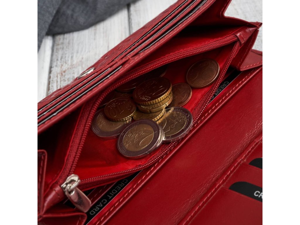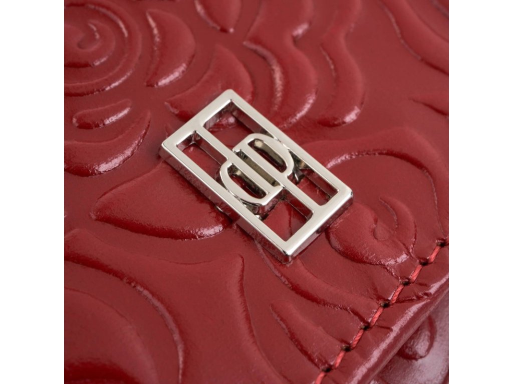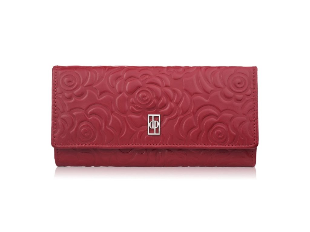 Dámská kožená peněženka Paolo Peruzzi s květinovým reliéfem; červená