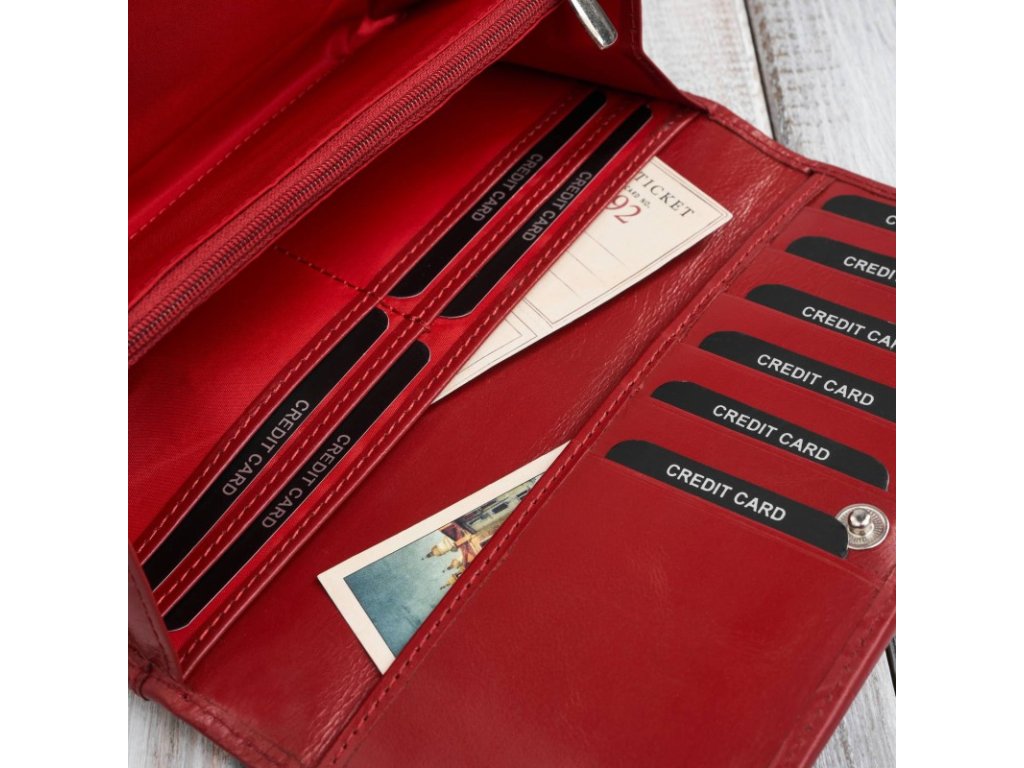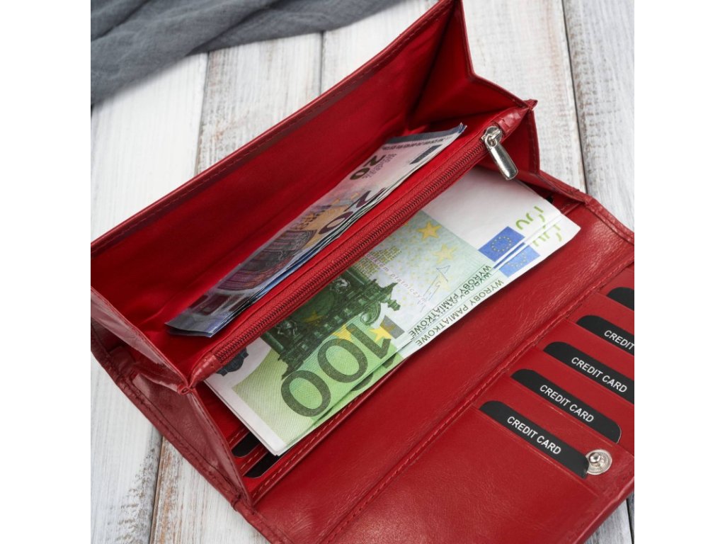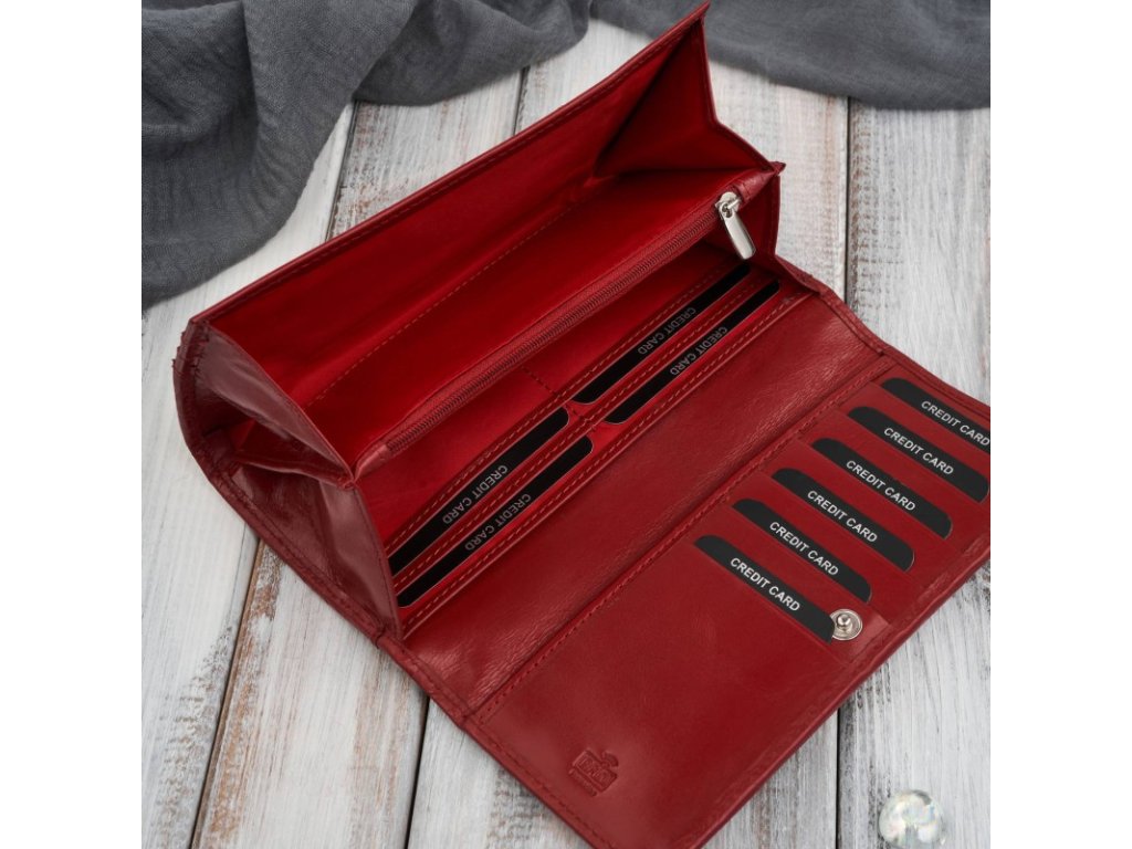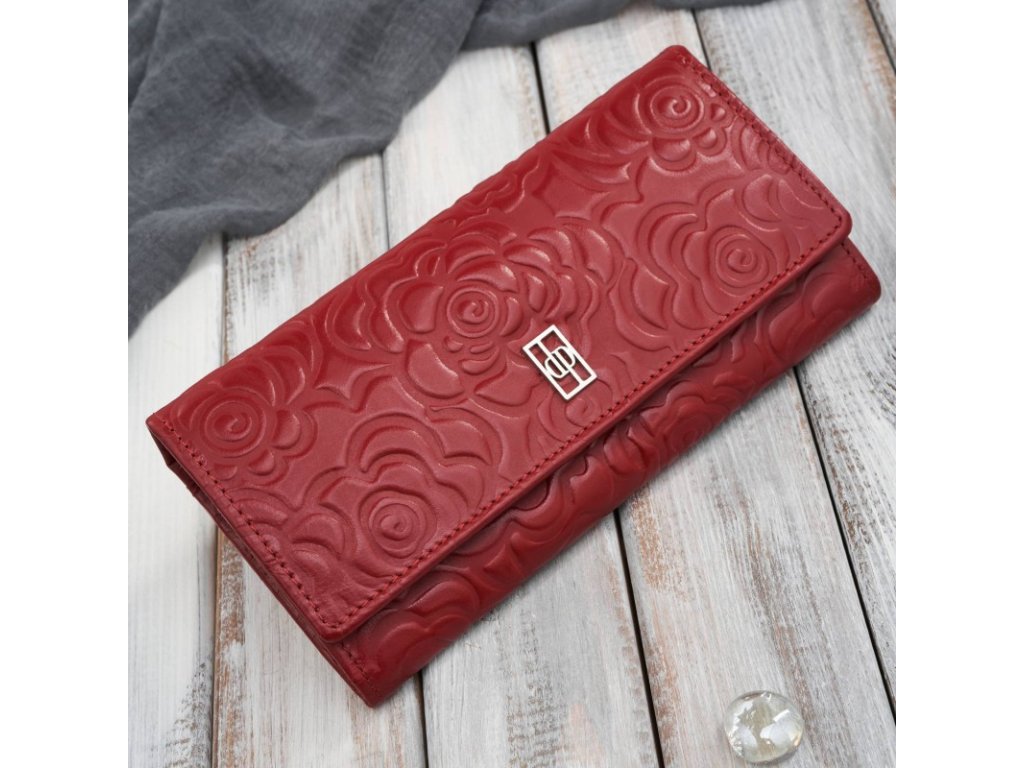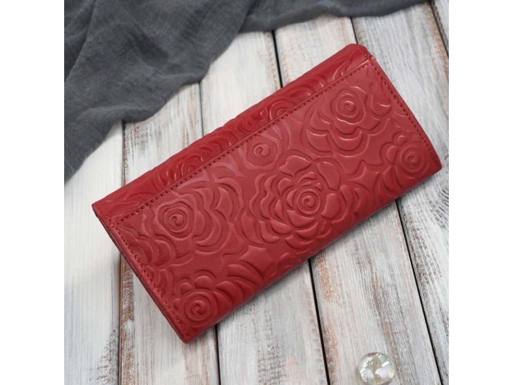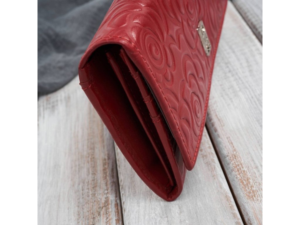 Dámská kožená peněženka Paolo Peruzzi s květinovým reliéfem; červená