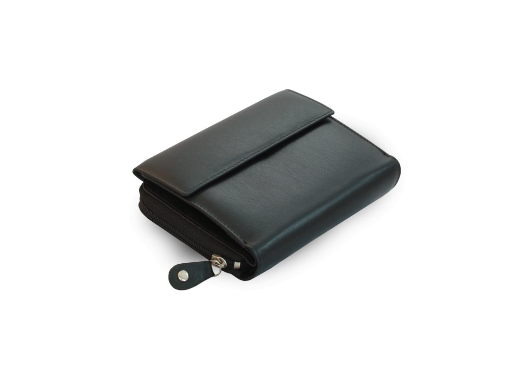 Dámská kožená peněženka s malou klopnou - česká výroba; černá