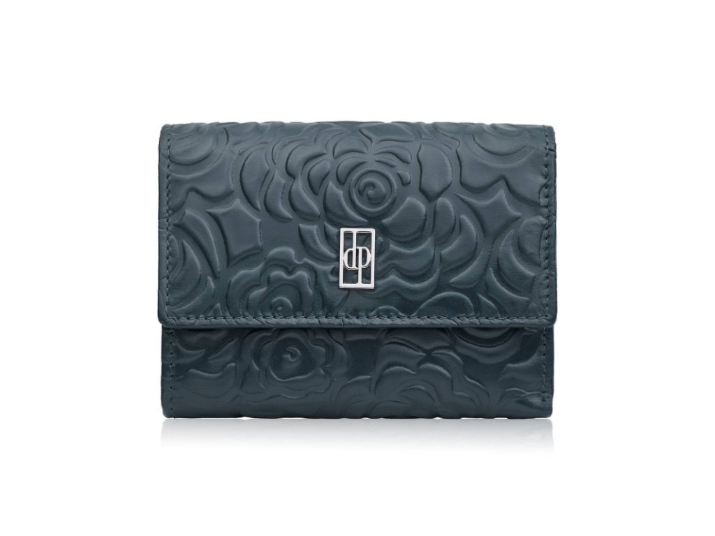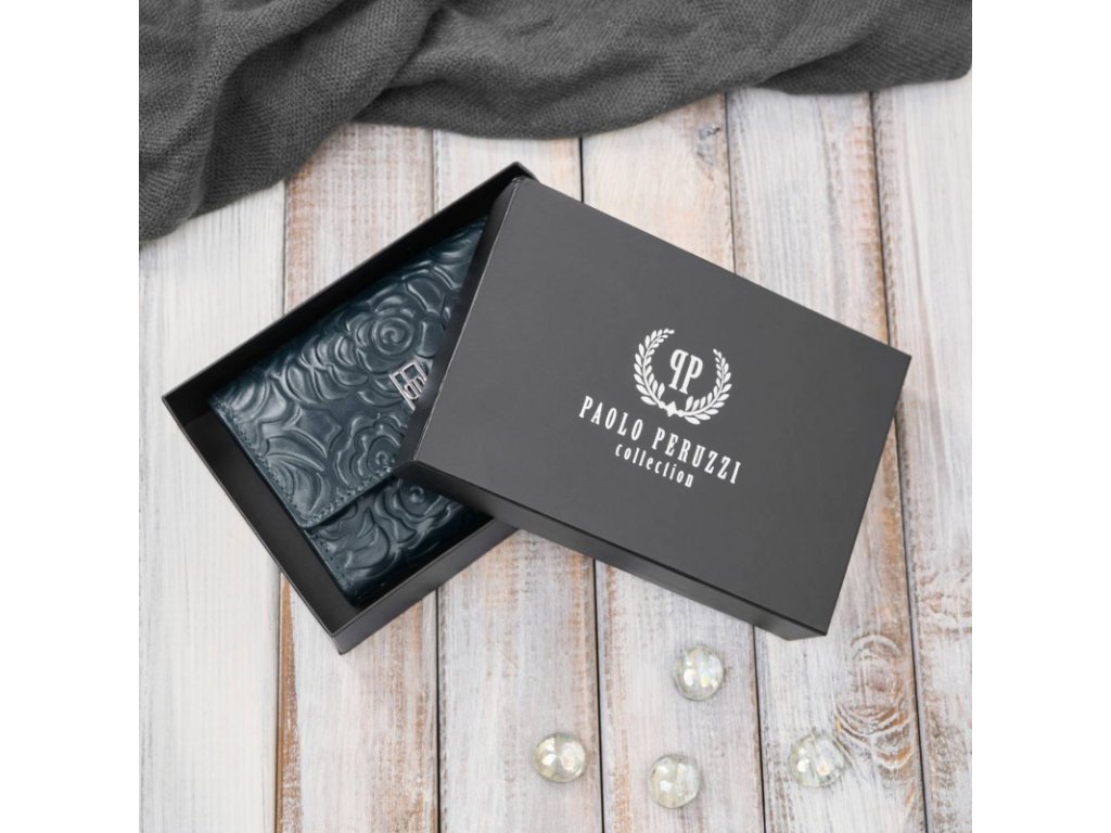 Dámská kožená peněženka s motivem květiny a RFID Peruzzi; modrá