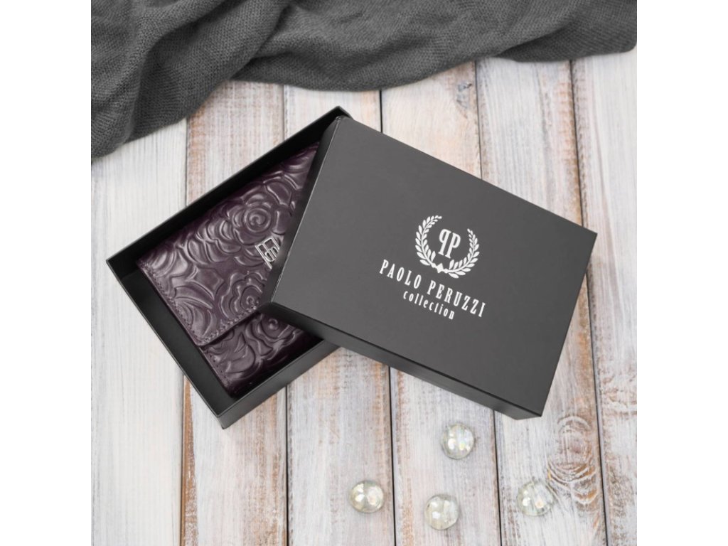 Dámská kožená peněženka s motivem květiny a RFID Peruzzi; vínová
