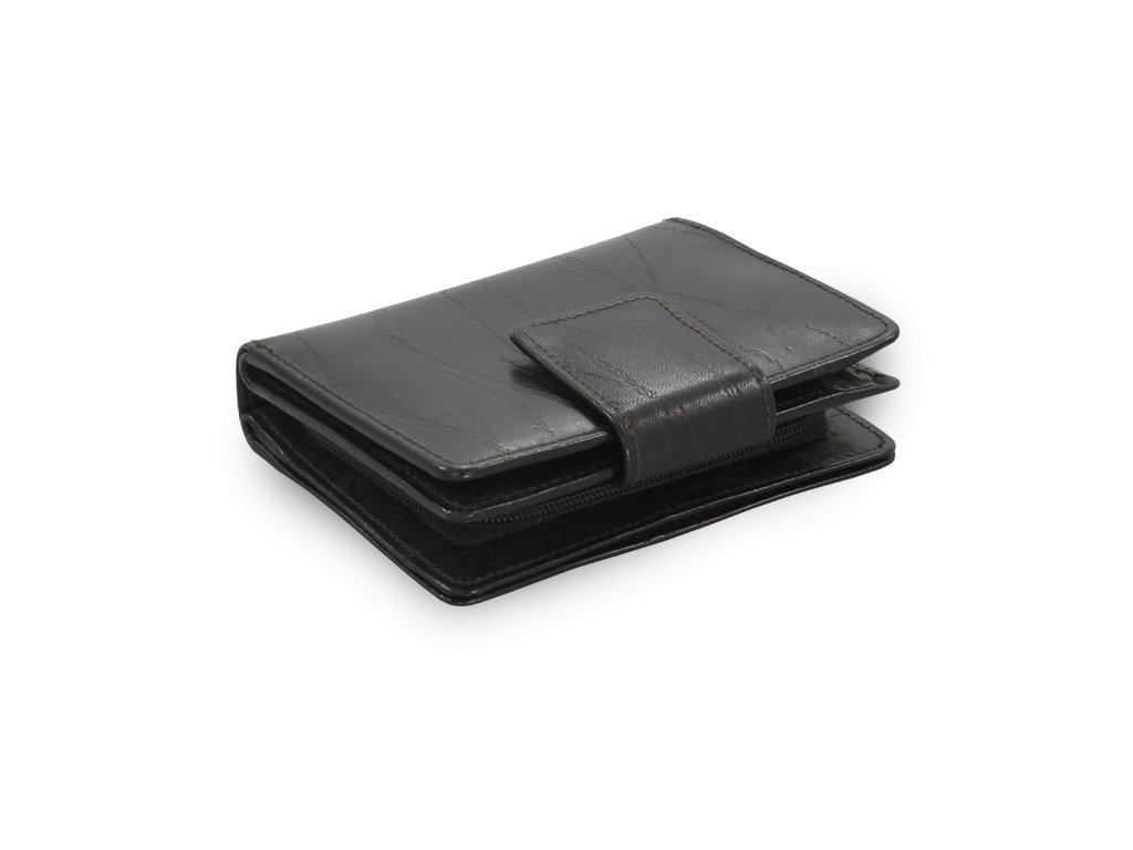 2 přihrádky na bankovky, 6 kapes na kreditní karty, 2 vnitřní kapsy, zipová zdvojená kapsa na mince a 2 průhledné kapsy.