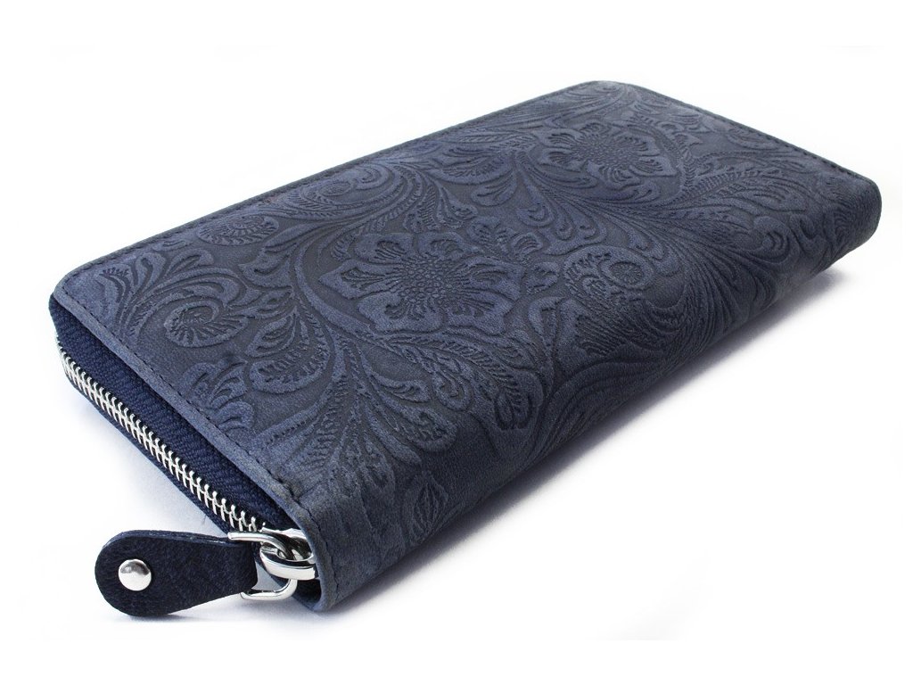 Dámská kožená zipová jednokomorová peněženka - česká výroba; modrá