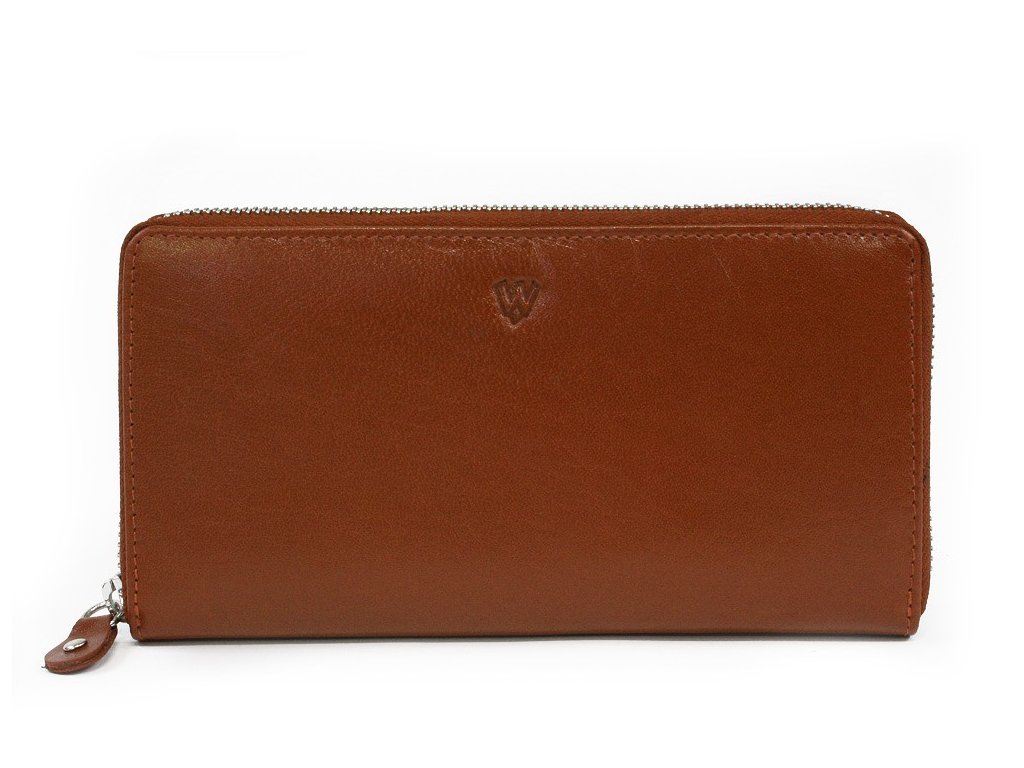 Dámská kožená zipová peněženka - česká výroba; koňak