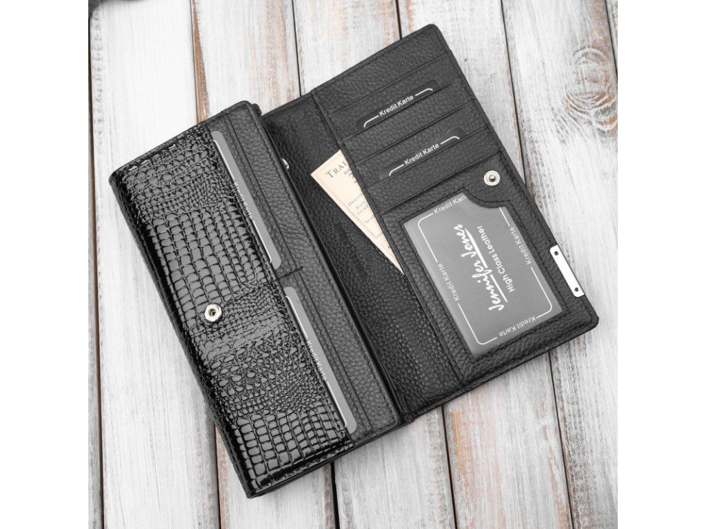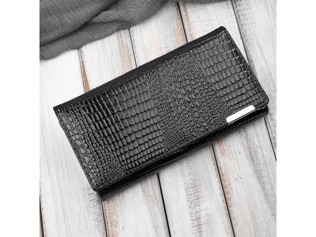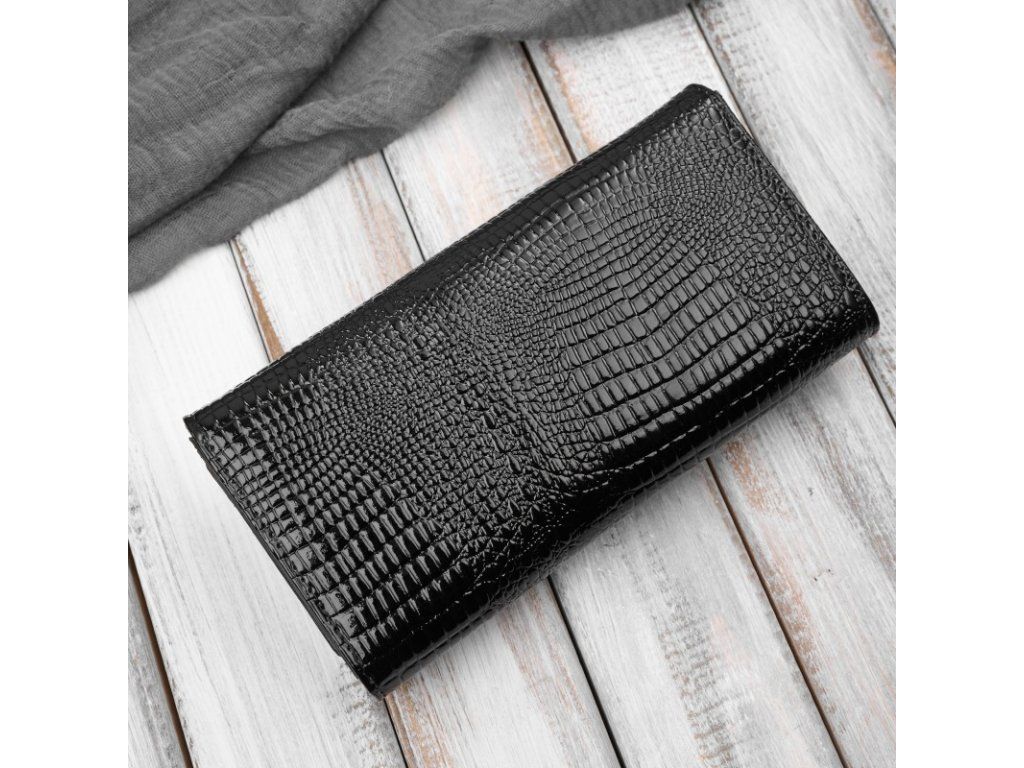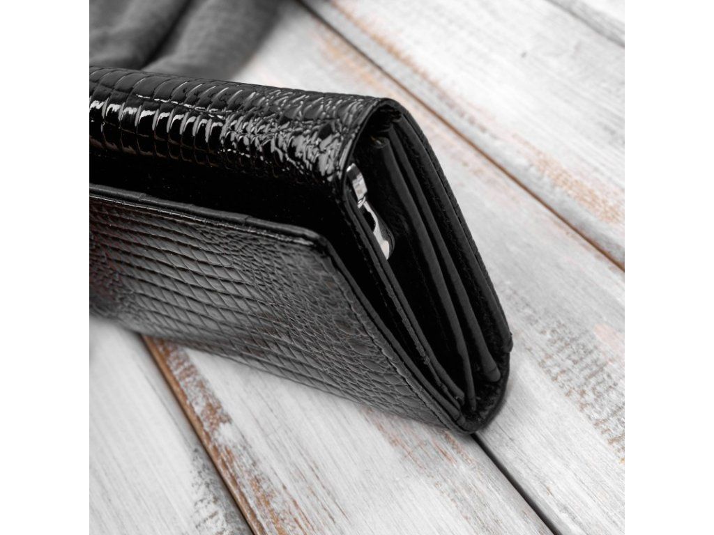 Dámská lakovaná kožená peněženka s krokodýlím vzorem; černá
