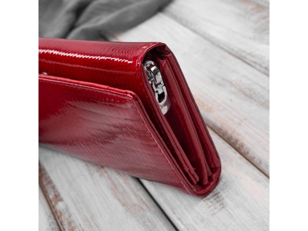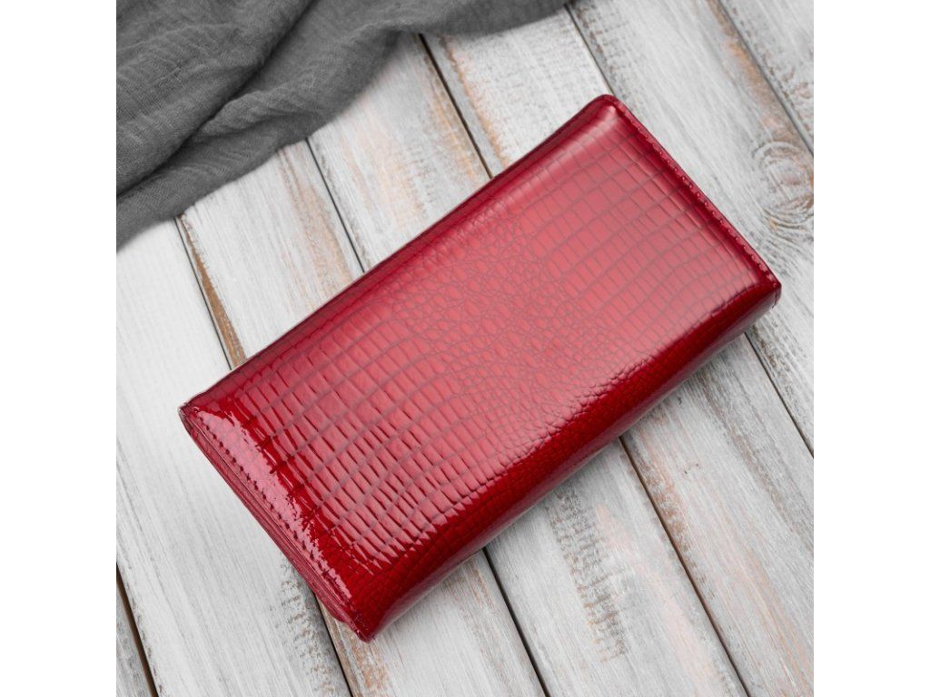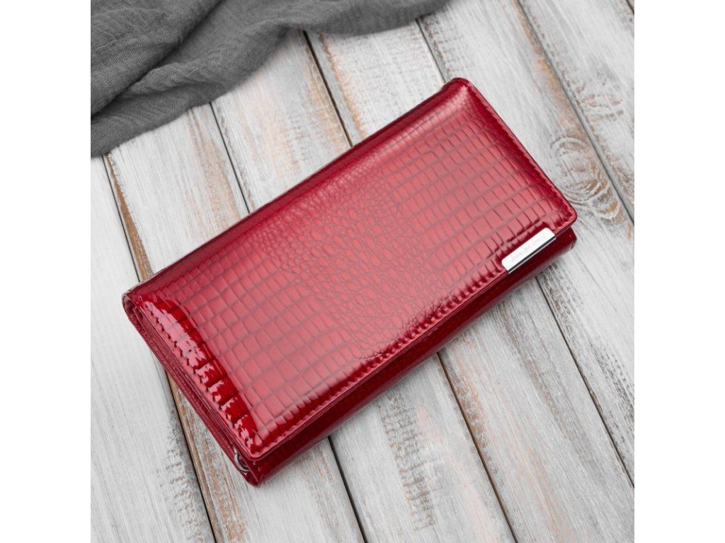 Dámská lakovaná kožená peněženka s krokodýlím vzorem; červená