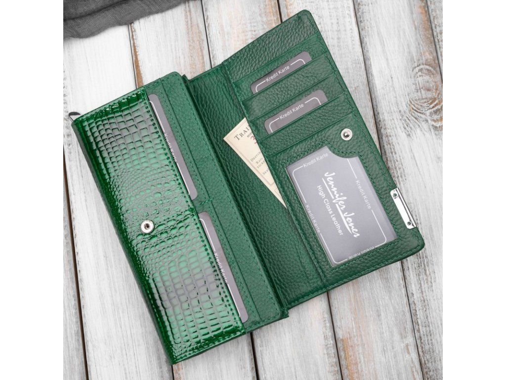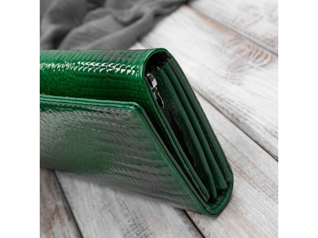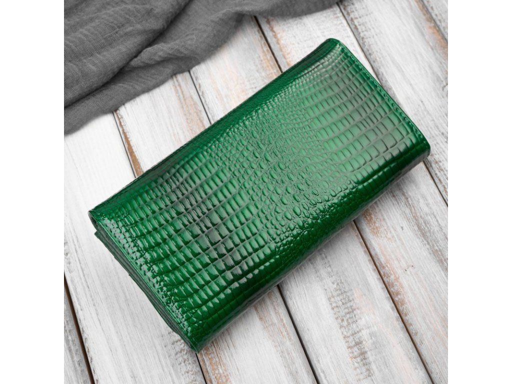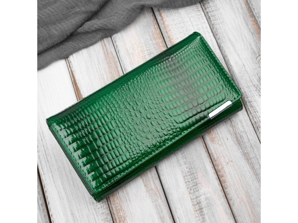 Dámská lakovaná kožená peněženka s krokodýlím vzorem; zelená