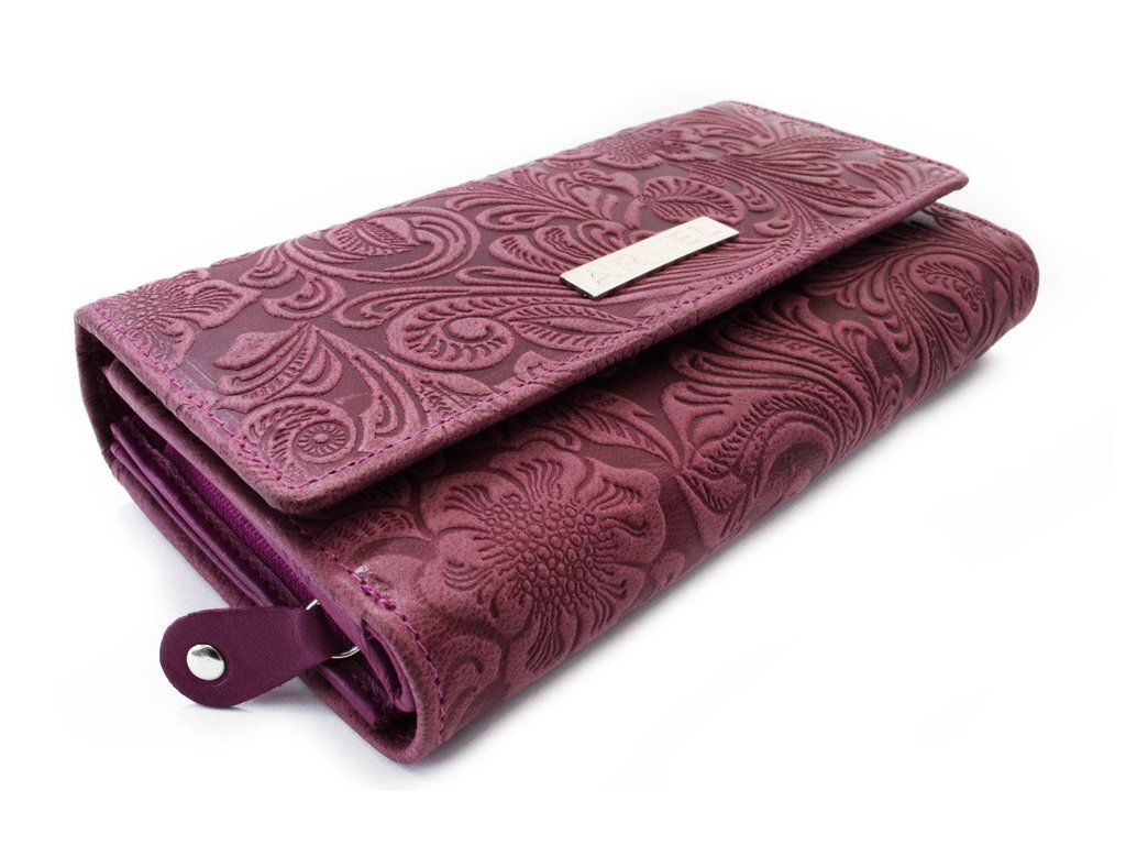 Dámská vzorovaná květinová peněženka - česká výroba; fuchsie