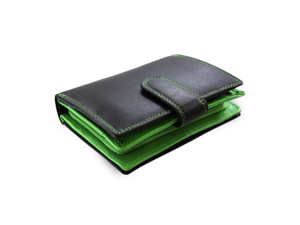 Kožená peněženka se zápinkou - česká výroba; černozelená