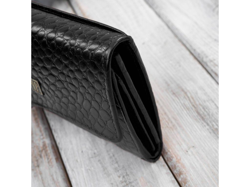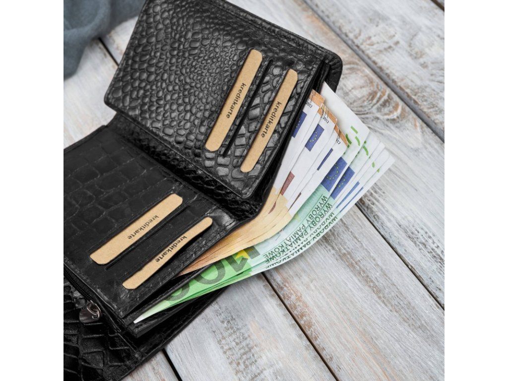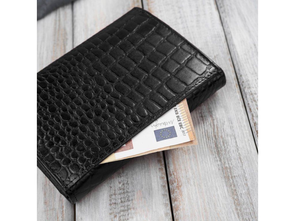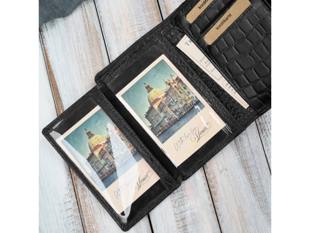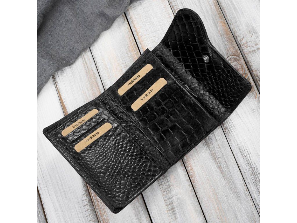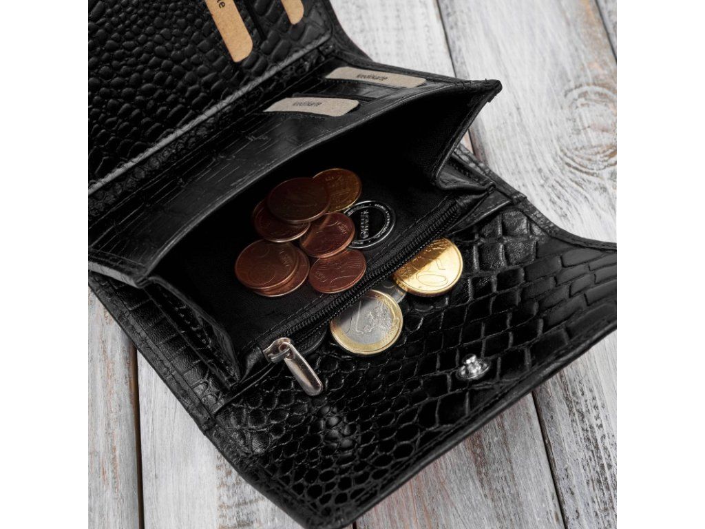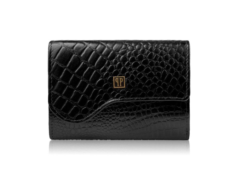 Malá dámská kožená peněženka s krokodýlím vzorem na šířku s RFID ochranou Peruzzi; černá
