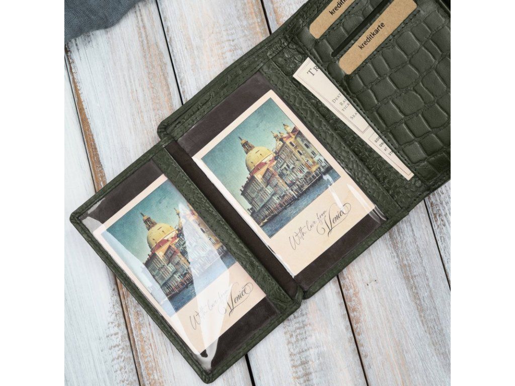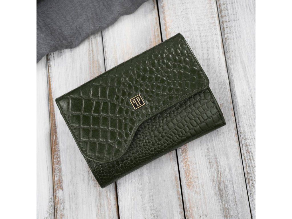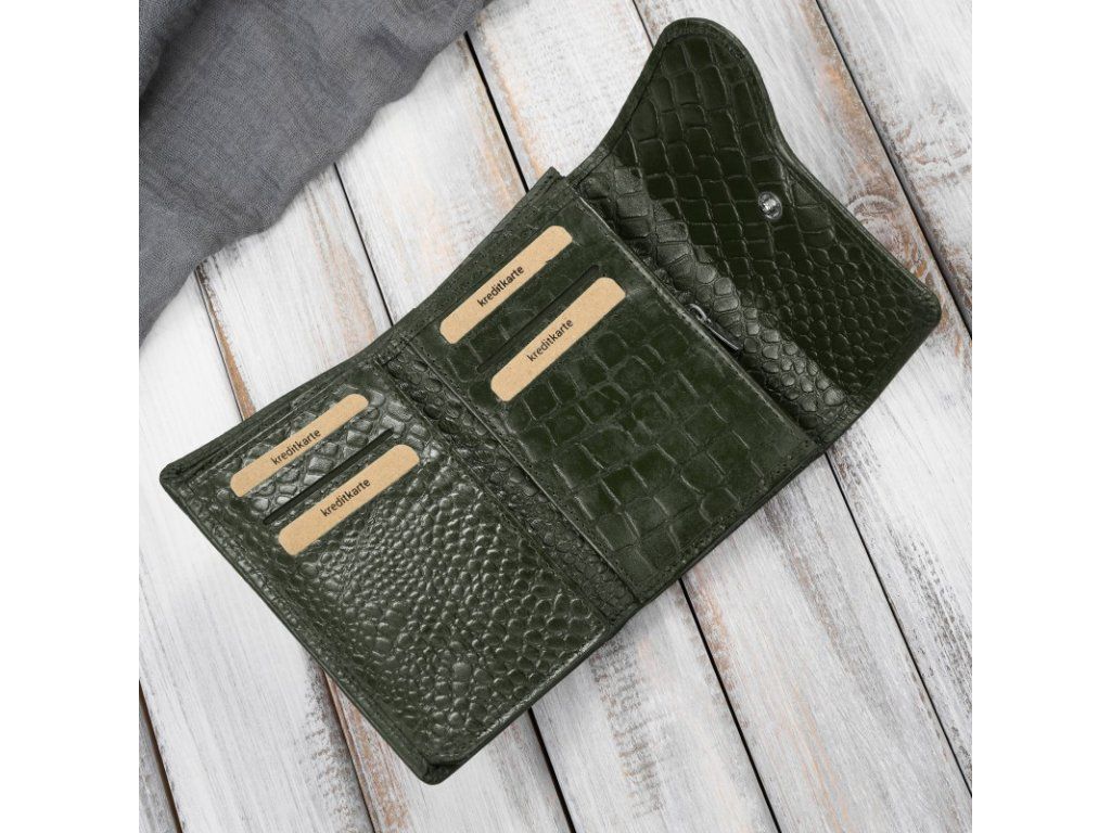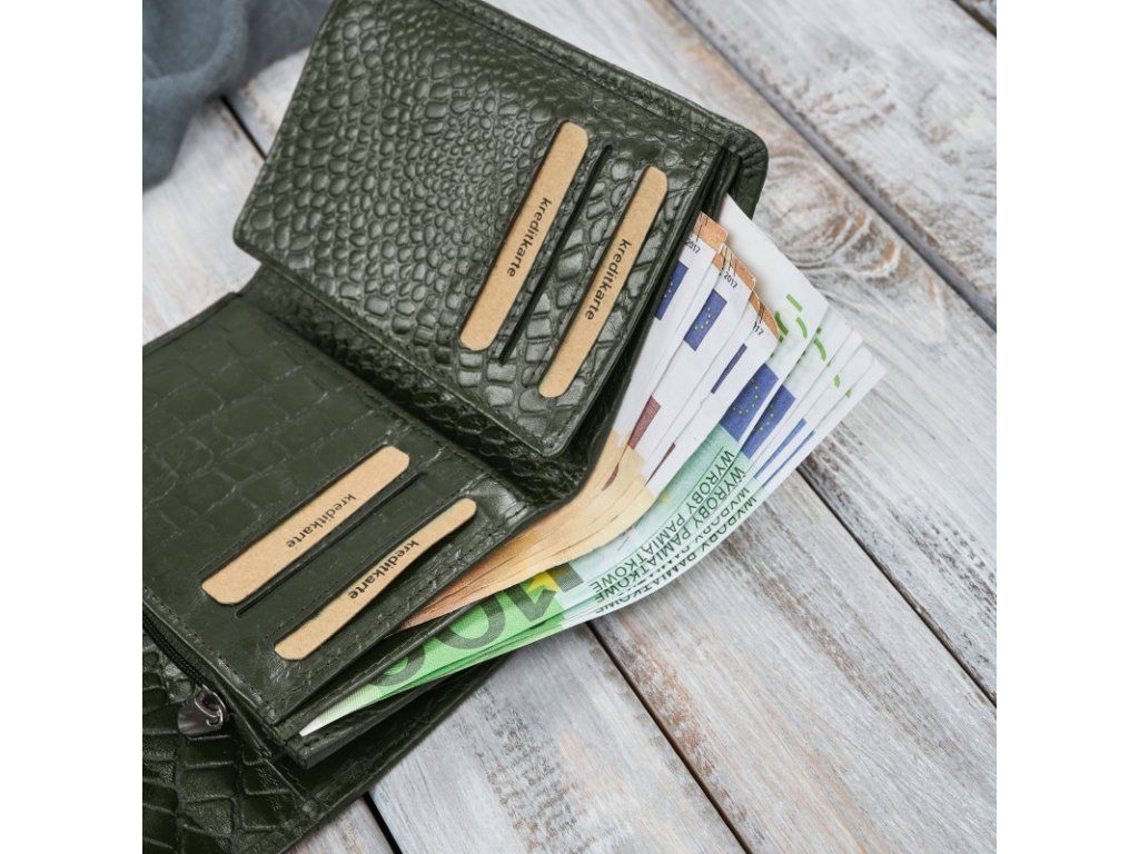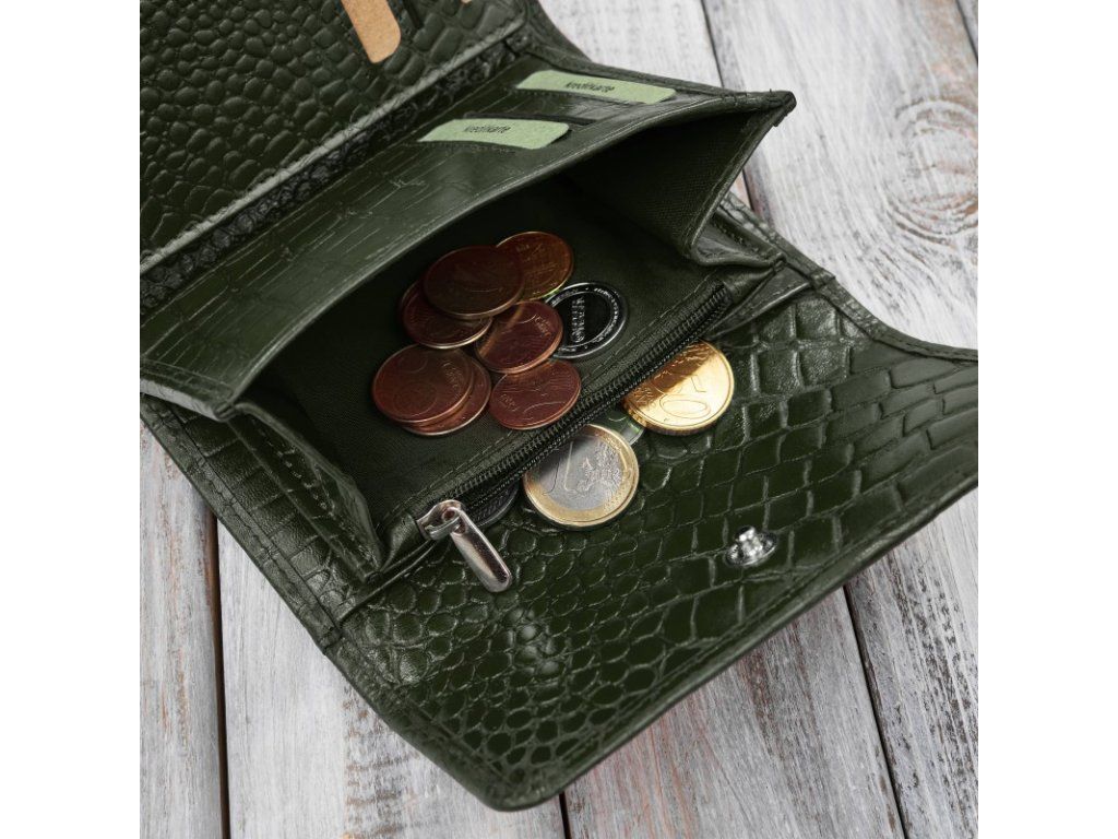Malá dámská kožená peněženka s krokodýlím vzorem na šířku s RFID ochranou Peruzzi; zelená