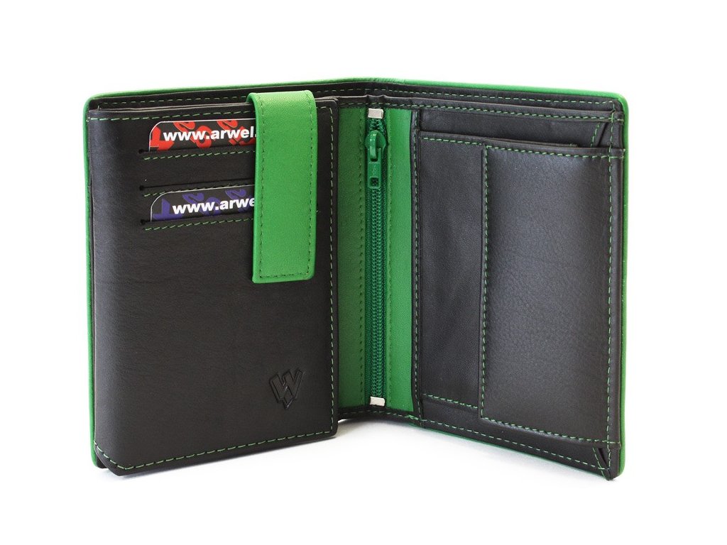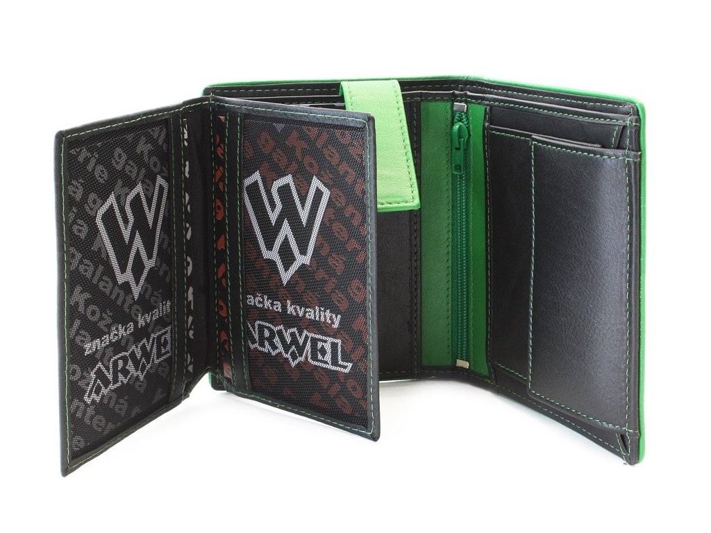 Pánská kožená peněženka s vnitřní zápinkou - česká výroba; černá-limetková
