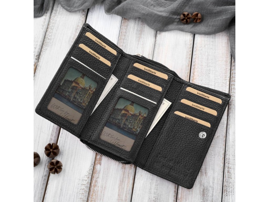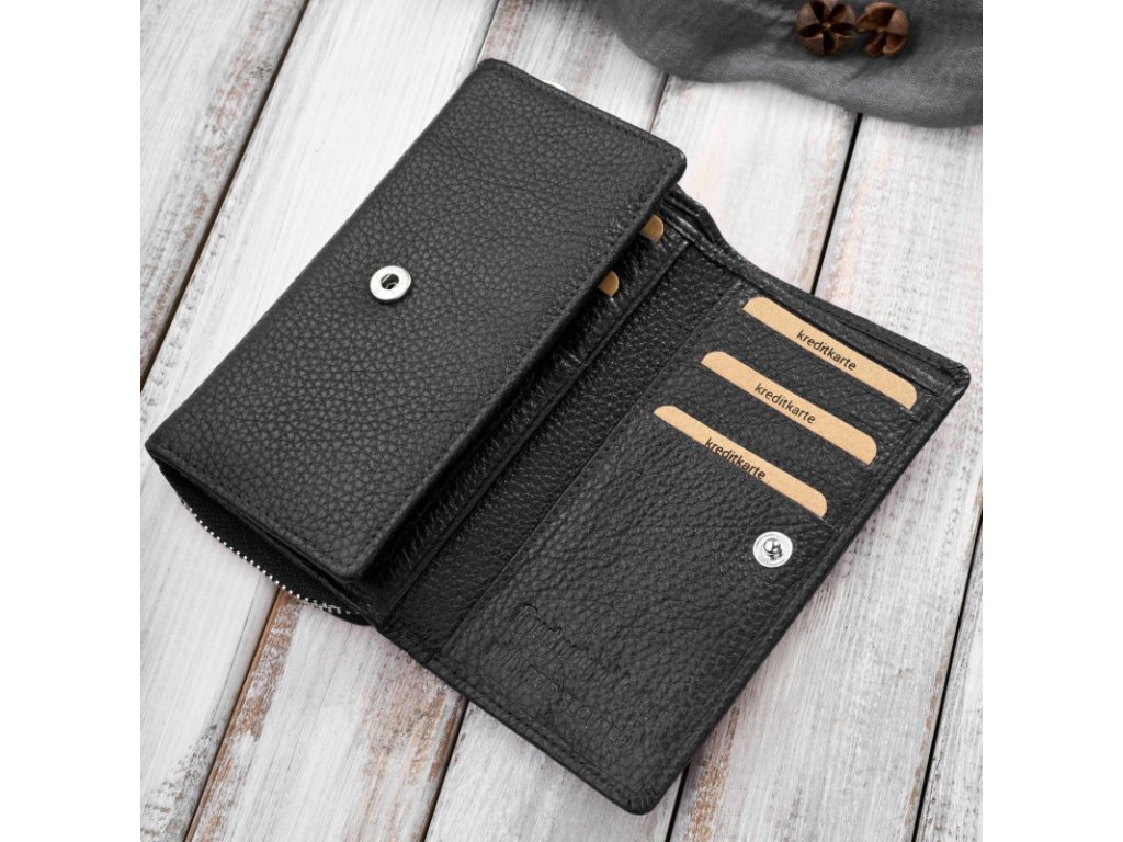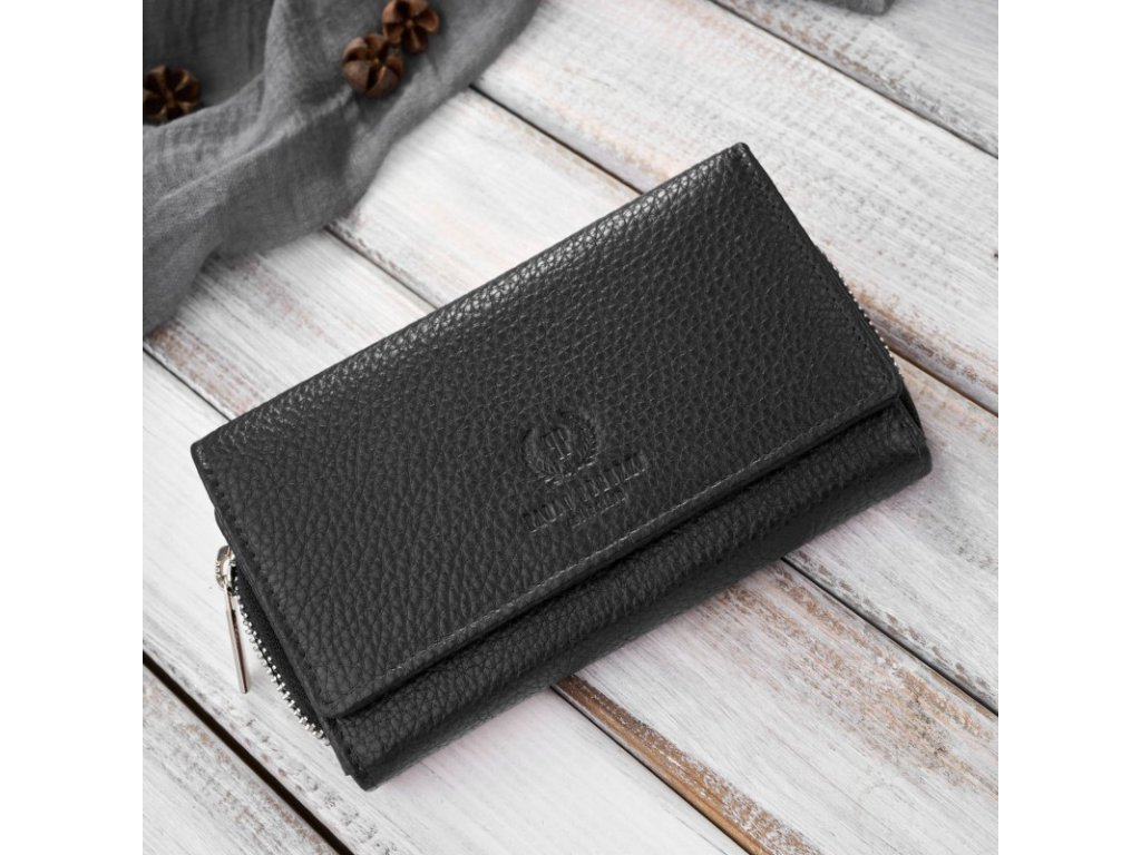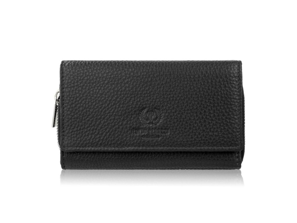 Velká dámská peněženka z pravé kůže prostorná Peruzzi; černá