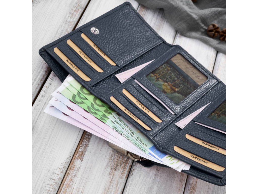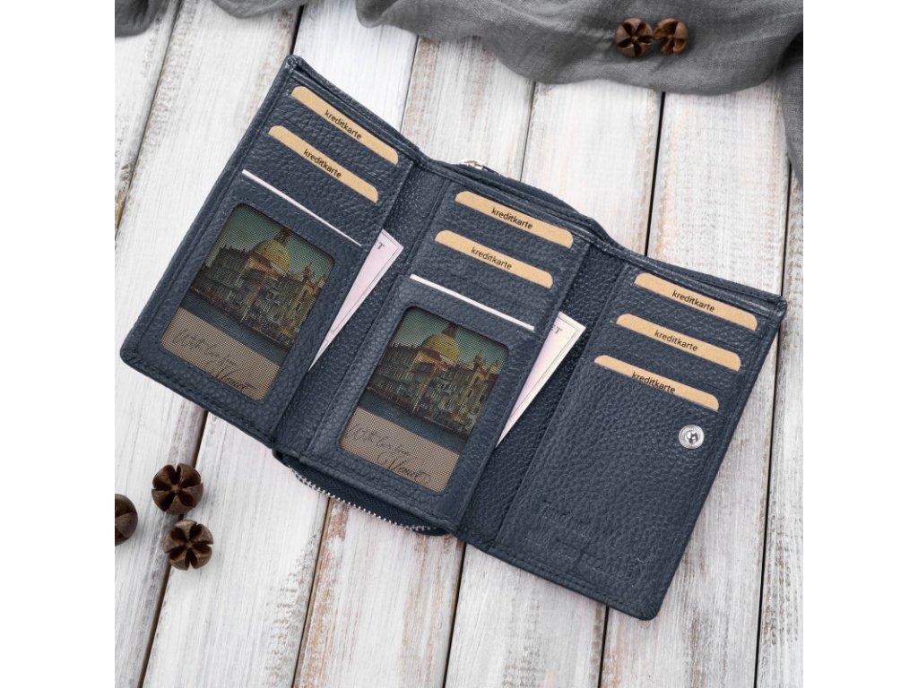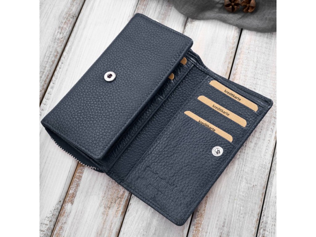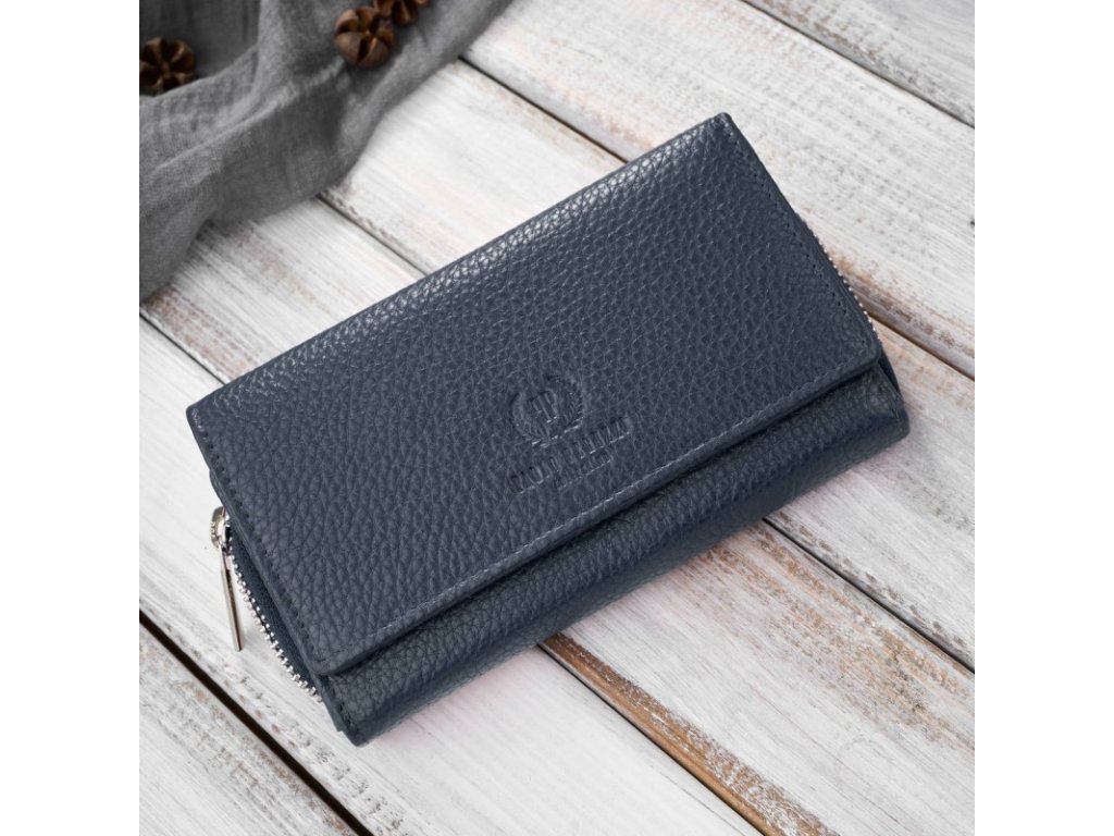 Velká dámská peněženka z pravé kůže prostorná Peruzzi; tmavě modrá