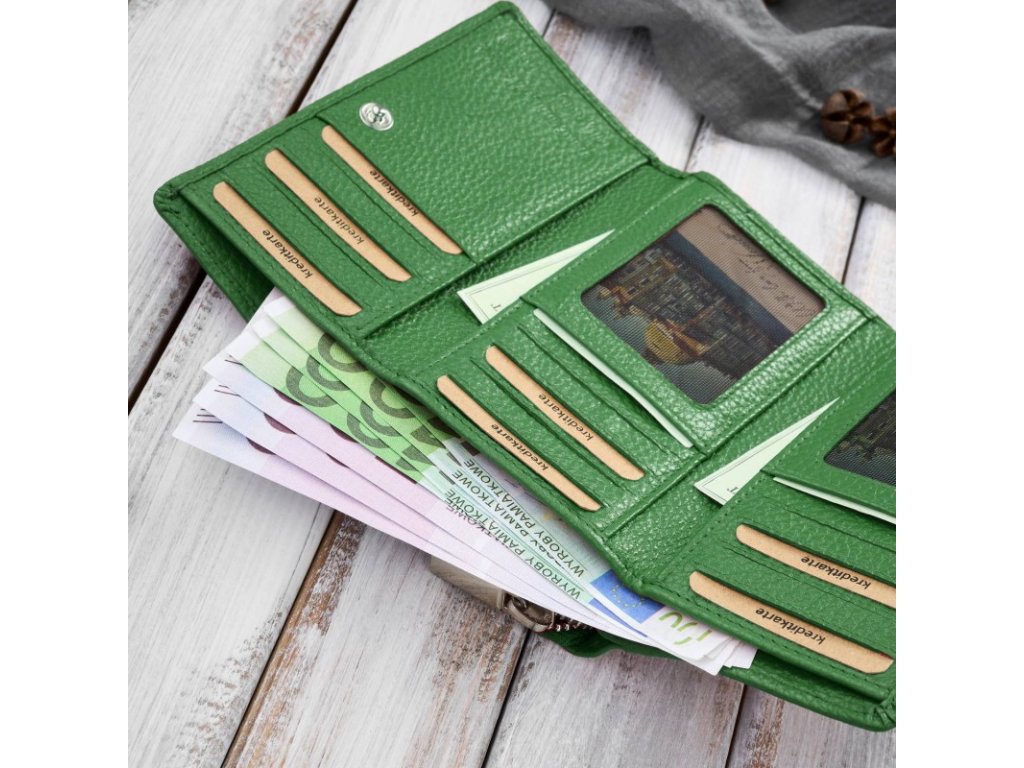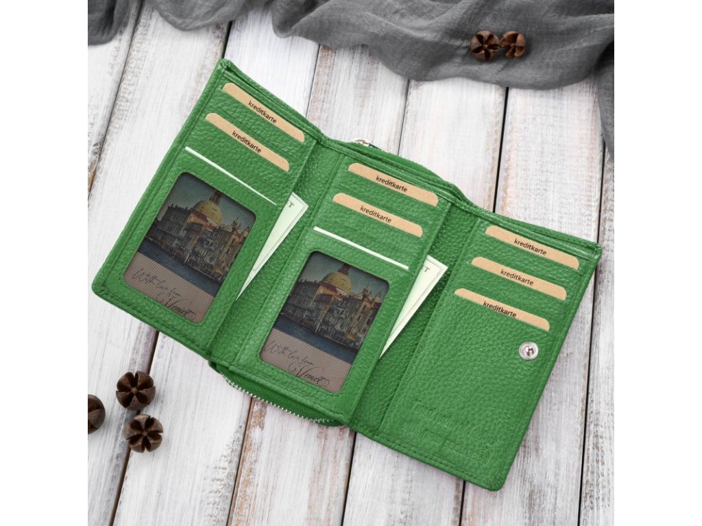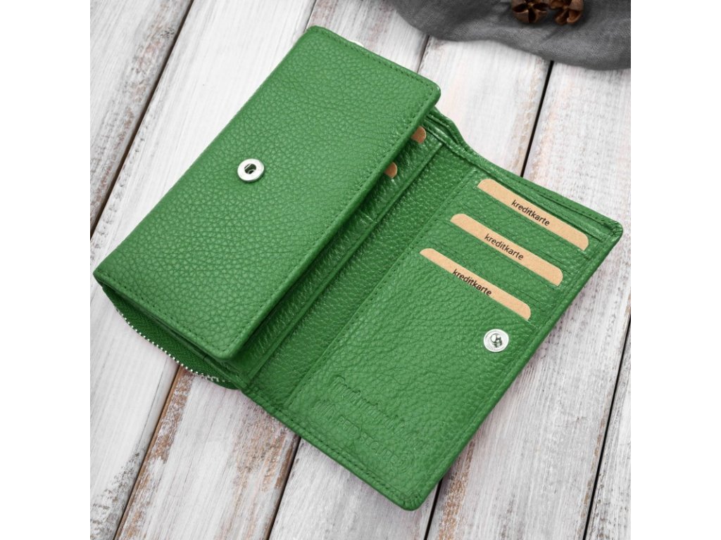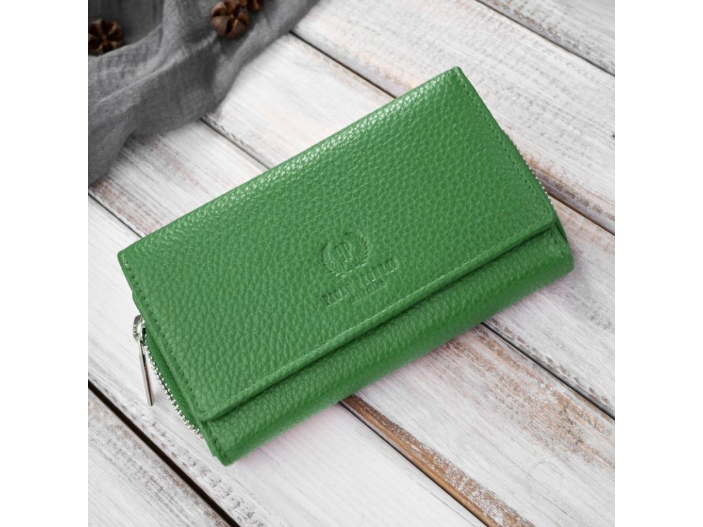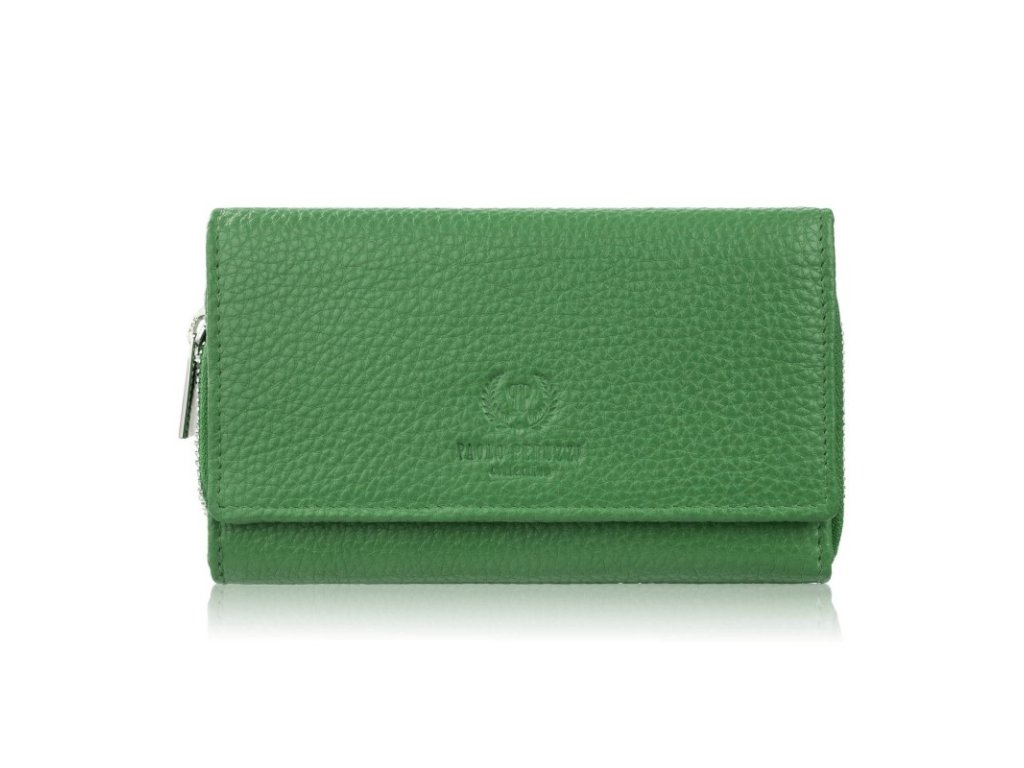 Velká dámská peněženka z pravé kůže prostorná Peruzzi; zelená