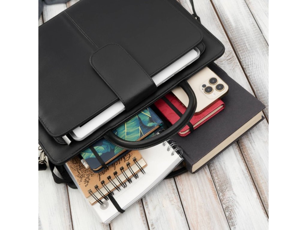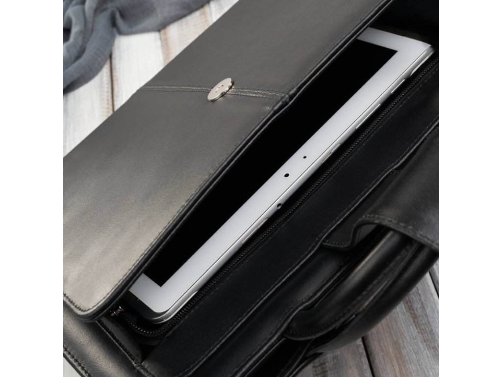 kůže, ze které je aktovka vyrobena, se díky použití speciálního činění snadno udržuje a je odolná proti vlhkosti a poškrábání