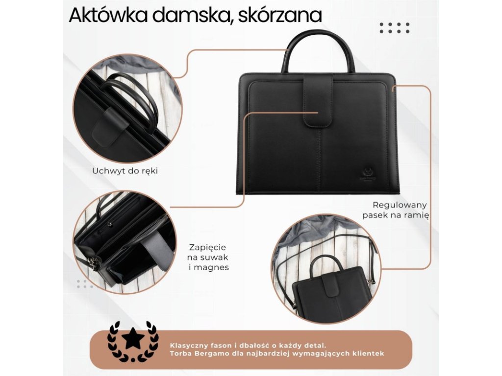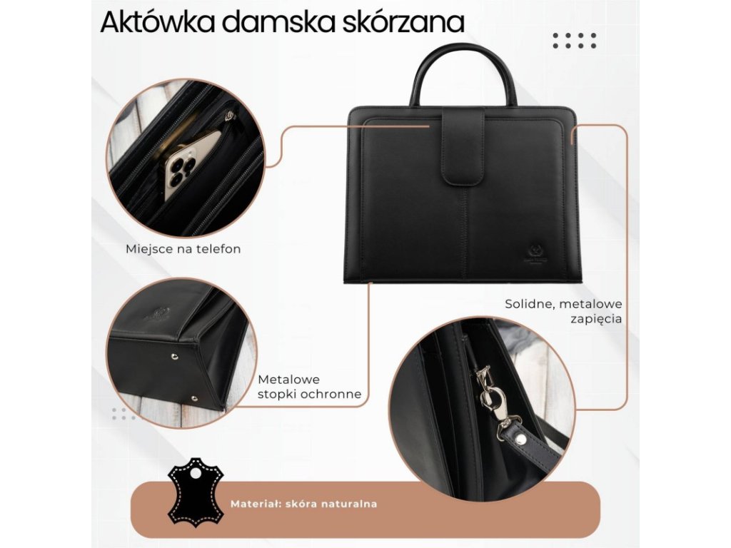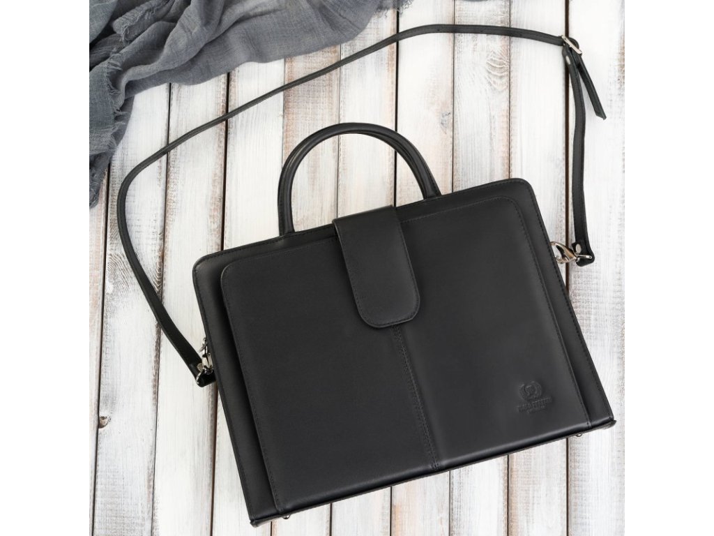 Aktówka damska skórzana czarna torba do ręki i na ramię 168BY-HBL Paolo Peruzzi