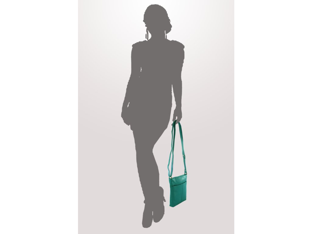 Vnitřní zipová kapsa, odepínatelný kroužek na klíče, zrcátko v koženém pouzdře, vnější zipová a otevřená kapsa, nastavitelný kožený popruh v max. délce 140 cm.