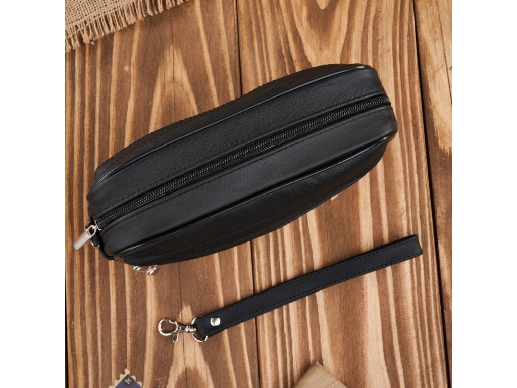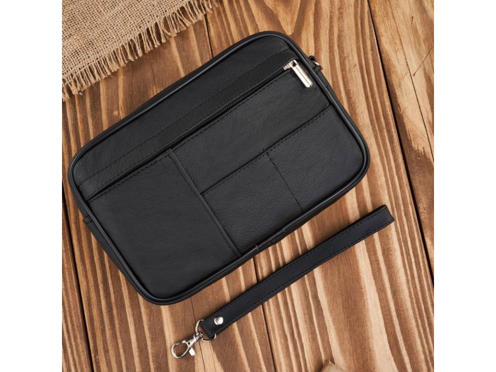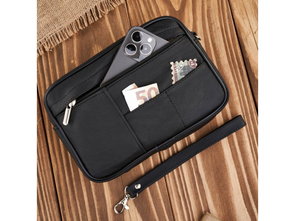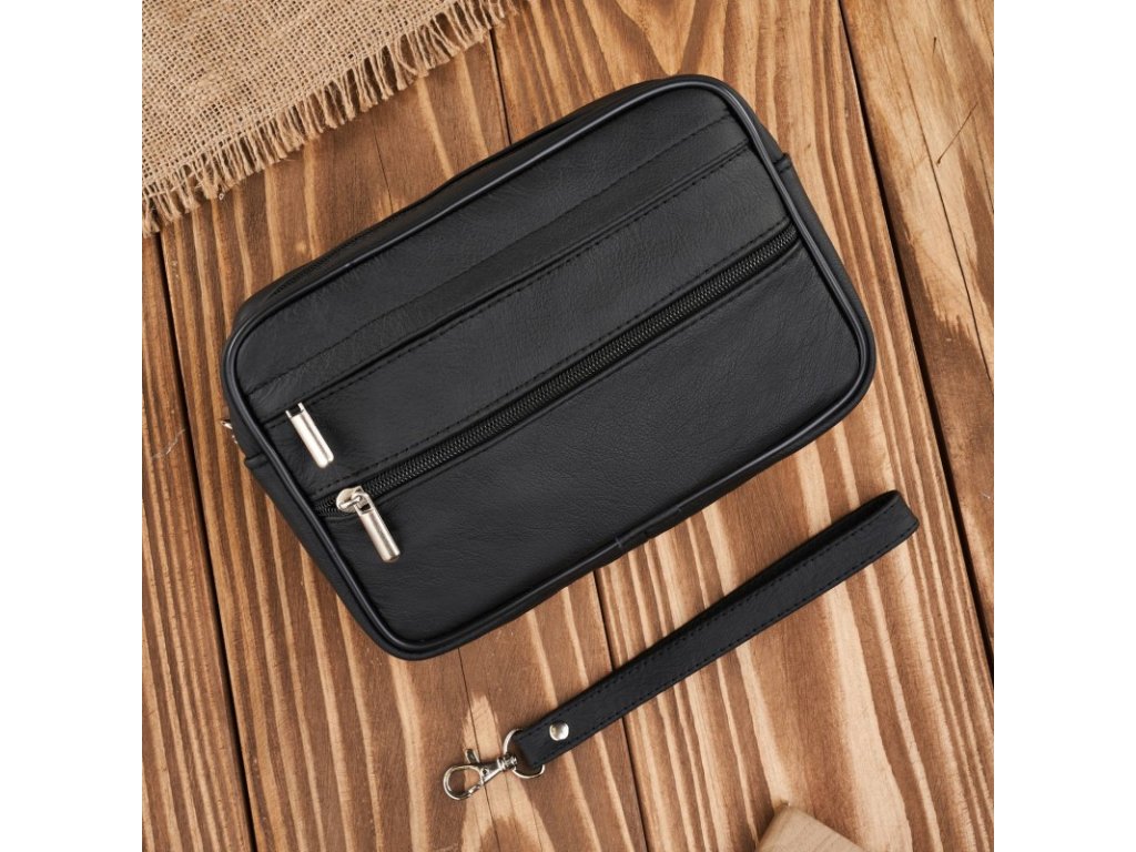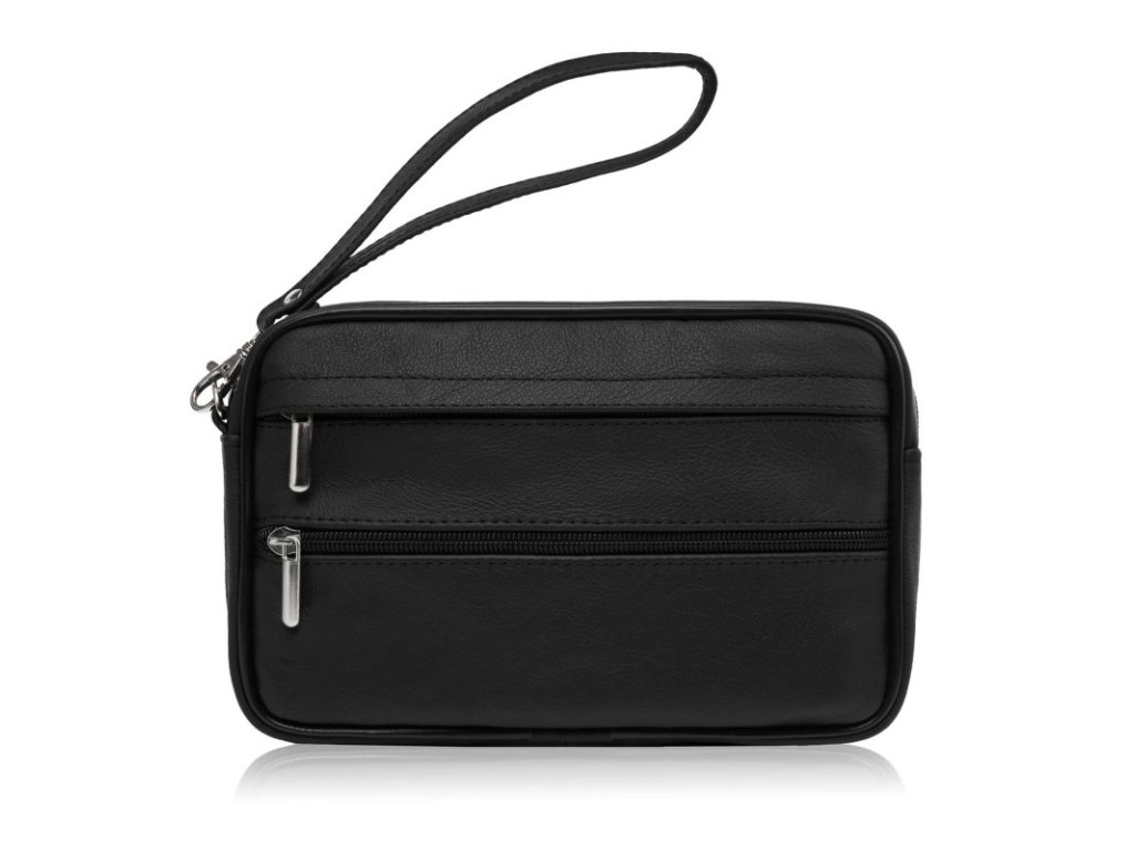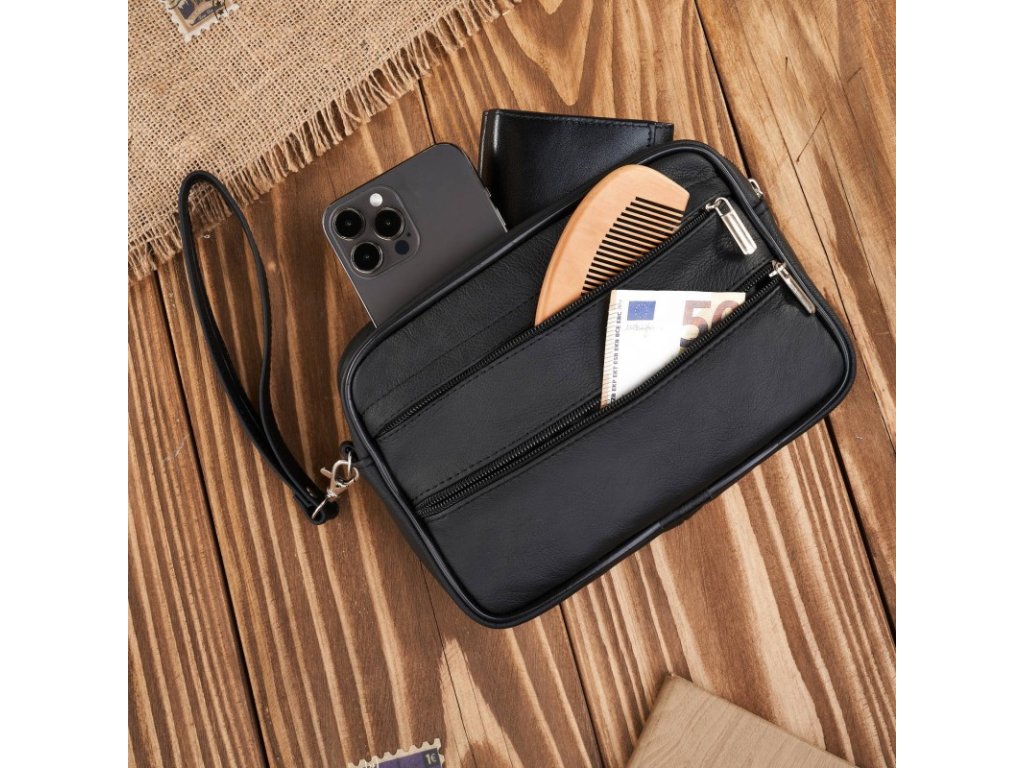 Pánská kožená etue do ruky, prostorná, klasický design Abruzzo; černá SKL