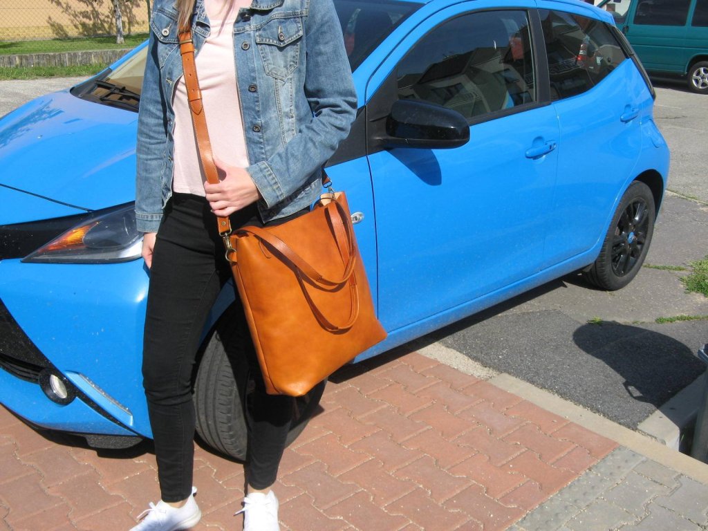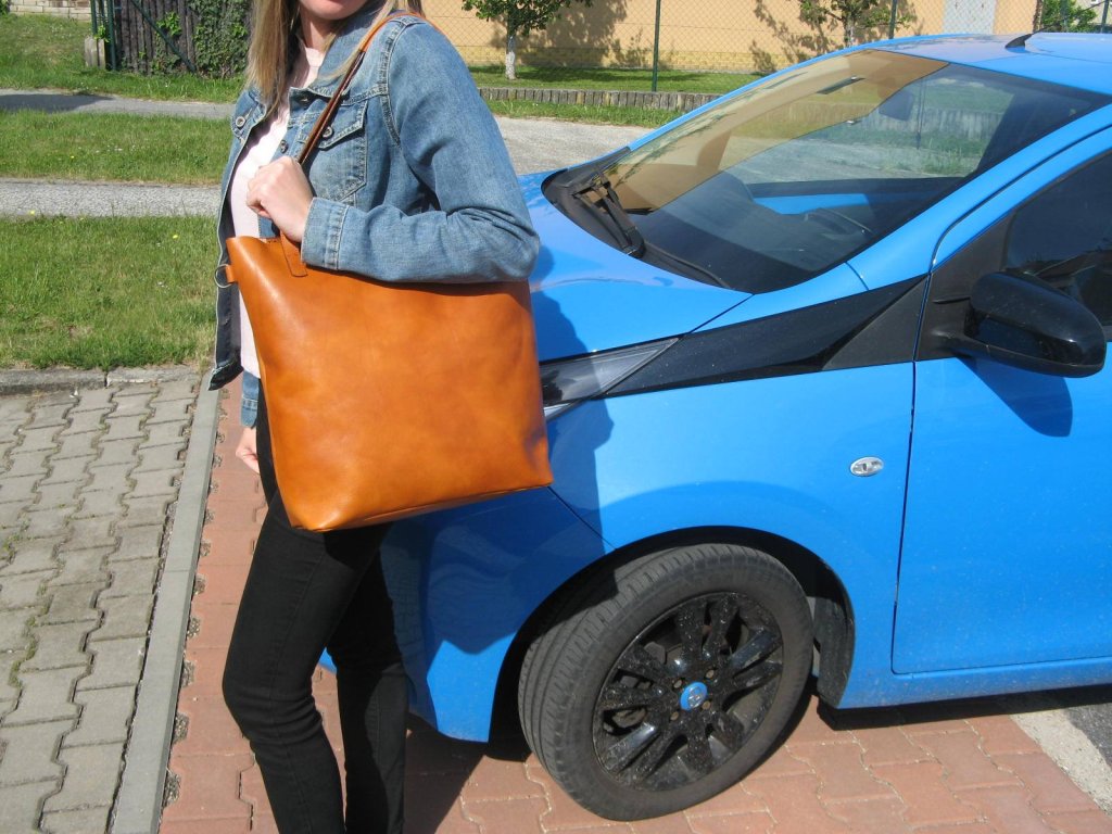Velká ručně šitá kabelka z pravé kůže TEREZA - česká výroba; koňak SKL