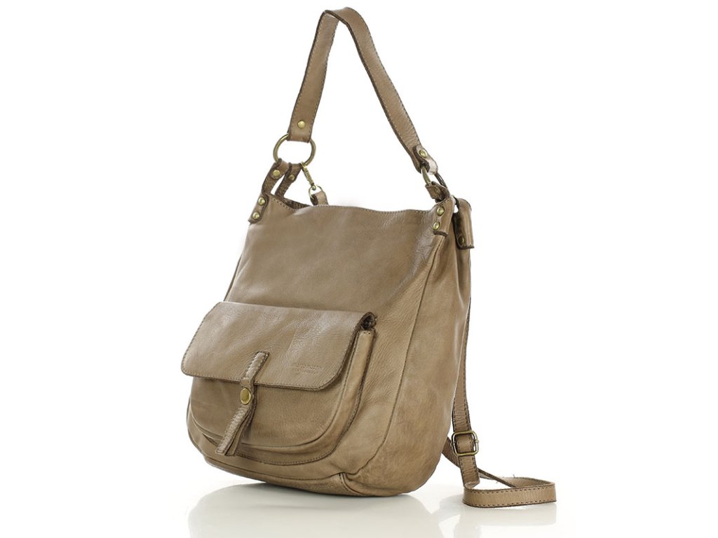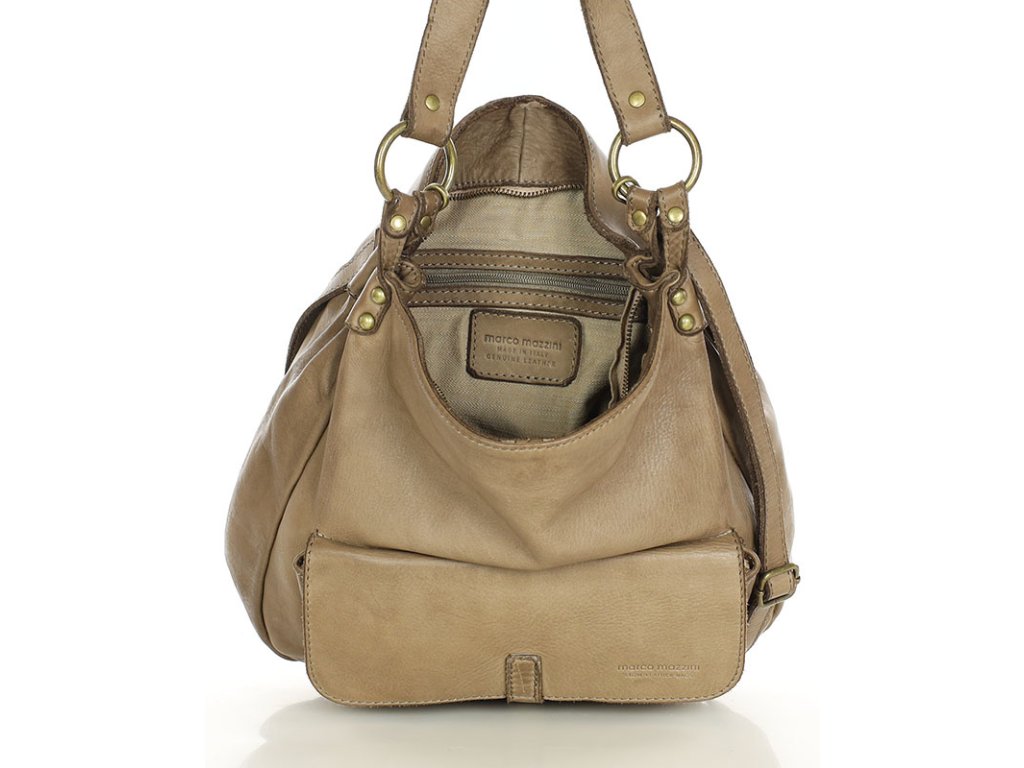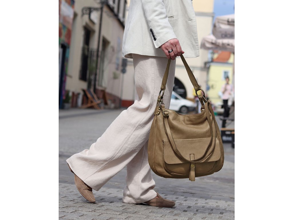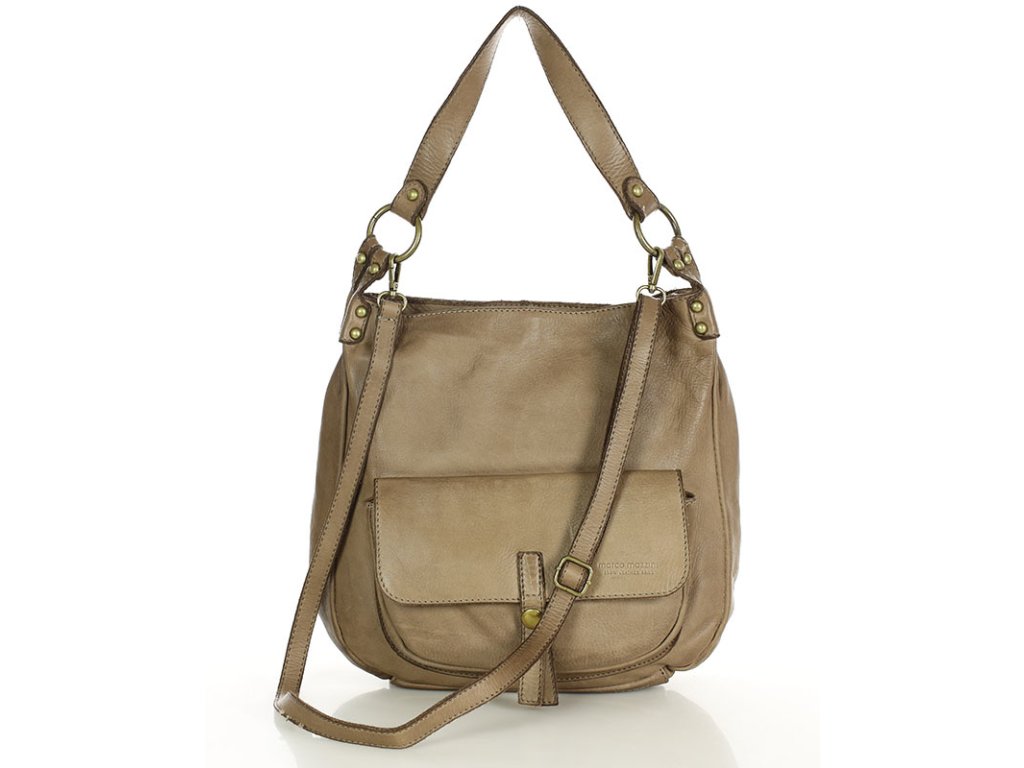 Kabelka přes rameno z kůže v hobo stylu MAZZINI; béžová
