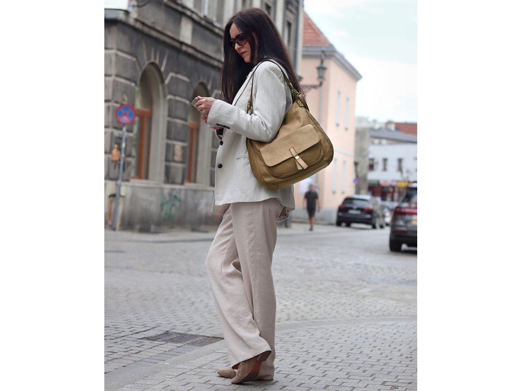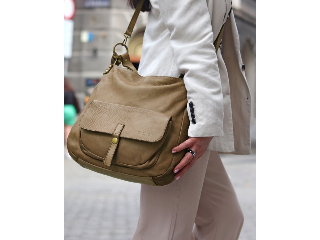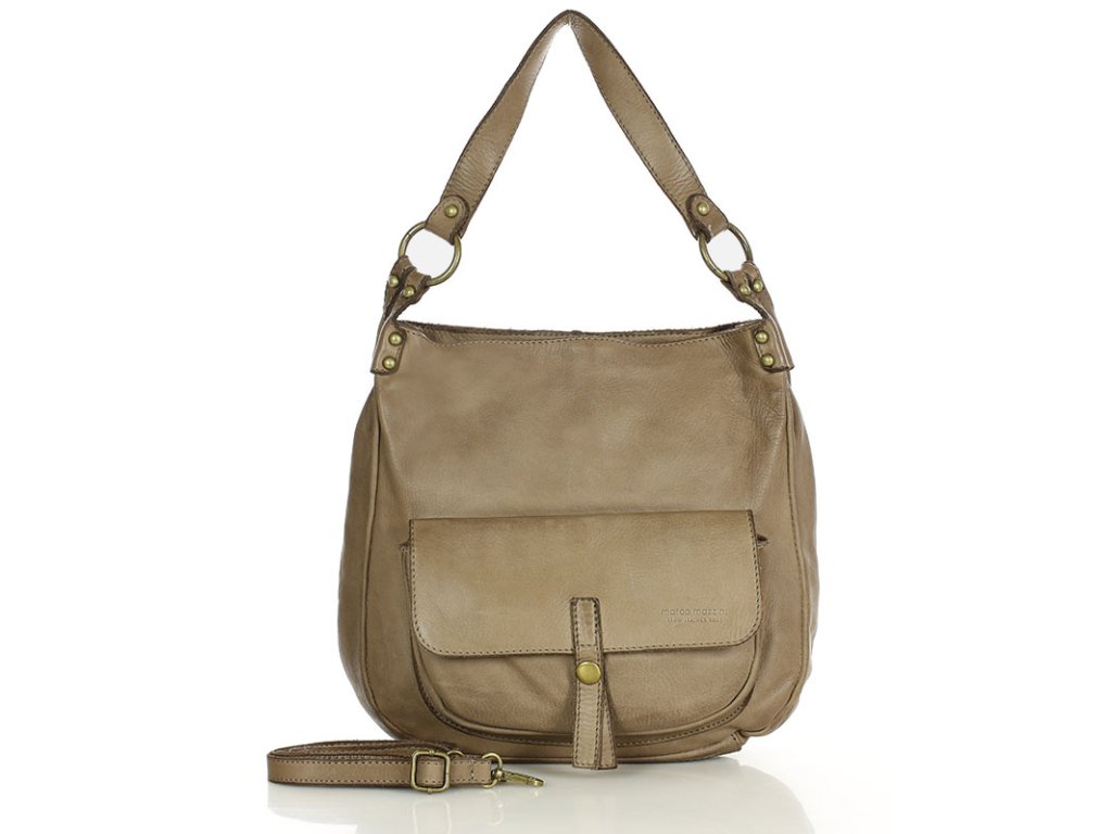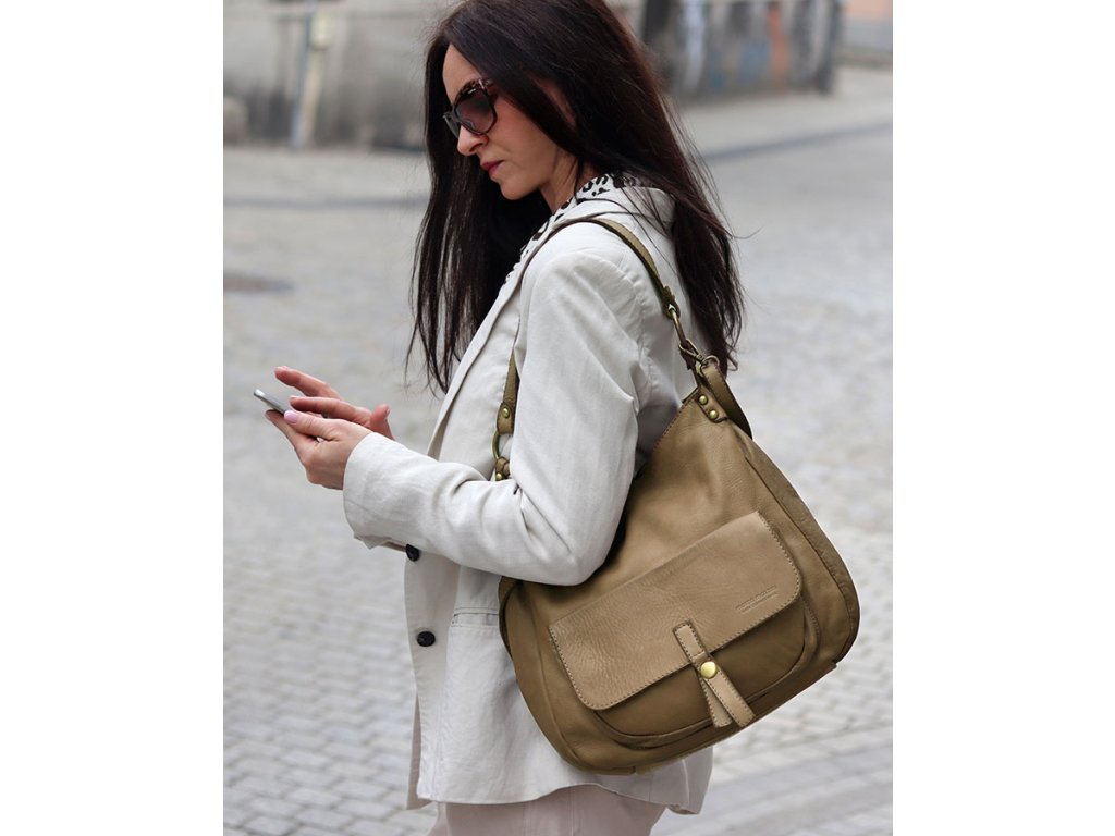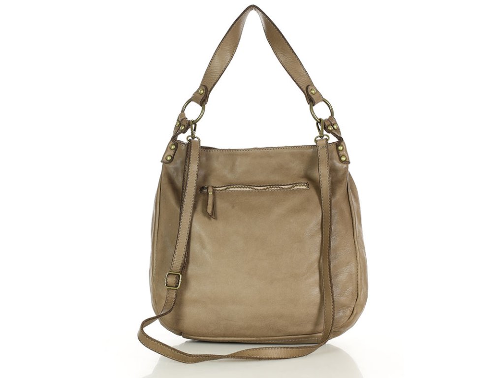 Kabelka přes rameno z kůže v hobo stylu MAZZINI; béžová